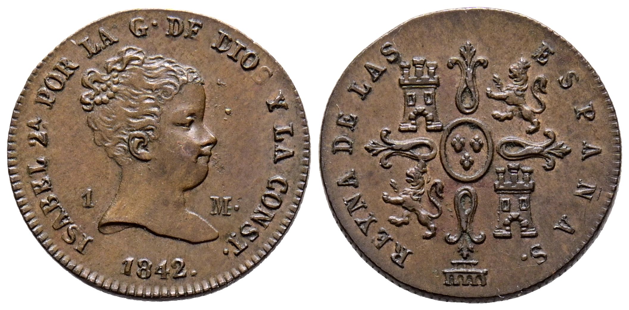 English ISABEL II (1833-1868). 1 Maravedi. (Ae. 1.30g/15mm). 1842. Segovia. (Cal-2019-35). Uncirculated-. Beautiful specimen.