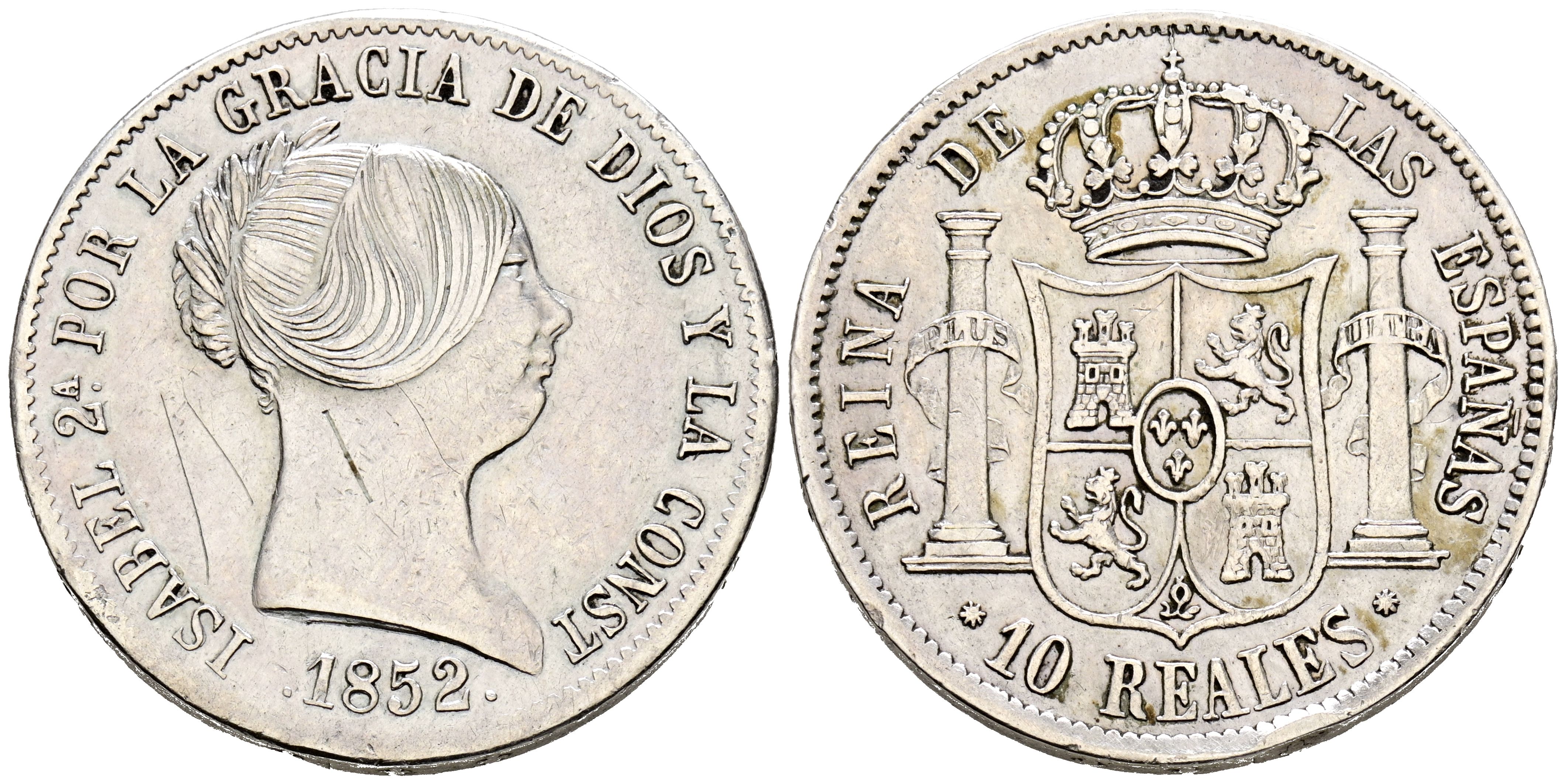 ISABEL II (1833-1868). 10 Reales. (Ar. 13,04g/30mm). 1852. Barcelona. (Cal-2019-507). VF+. Lines on obverse. Small bump on edge.