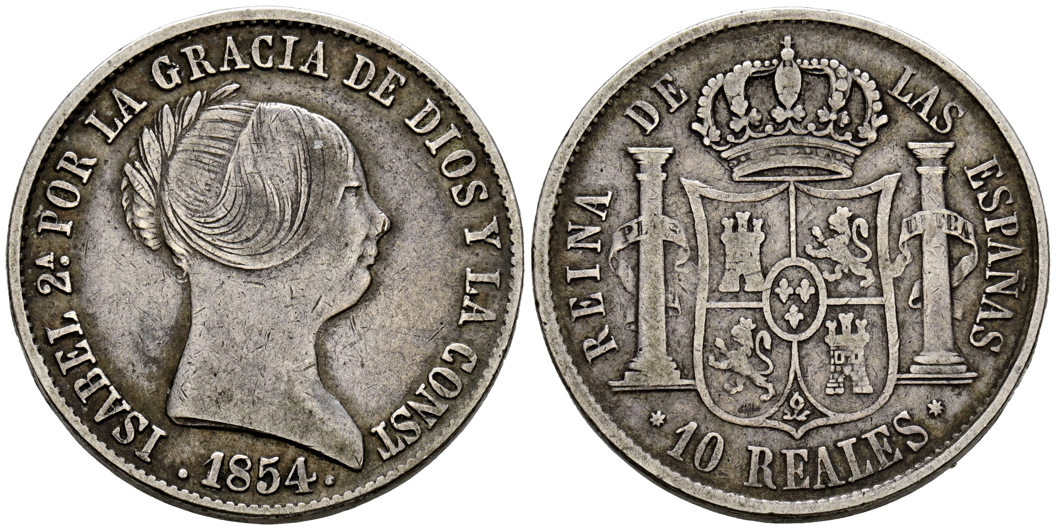 ISABEL II (1833-1868). 10 Reales (Ar. 12,91g/30mm). 1854. Seville (Cal-2019-551). VF. Dark patina.