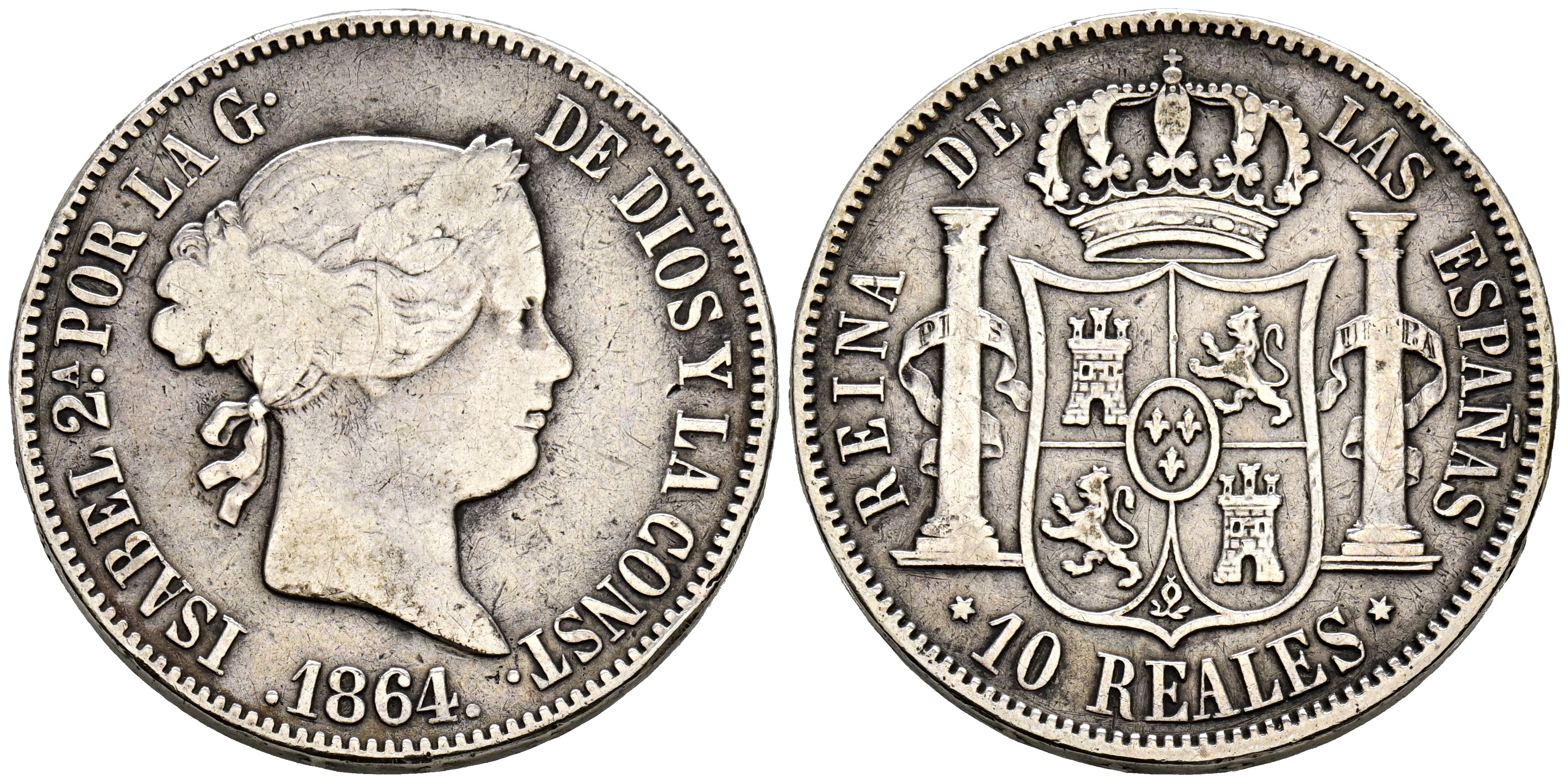 ISABEL II (1833-1868). 10 Reales. (Ar. 12,60g /29mm). 1864. Madrid. (Cal-2019-541). VF.
