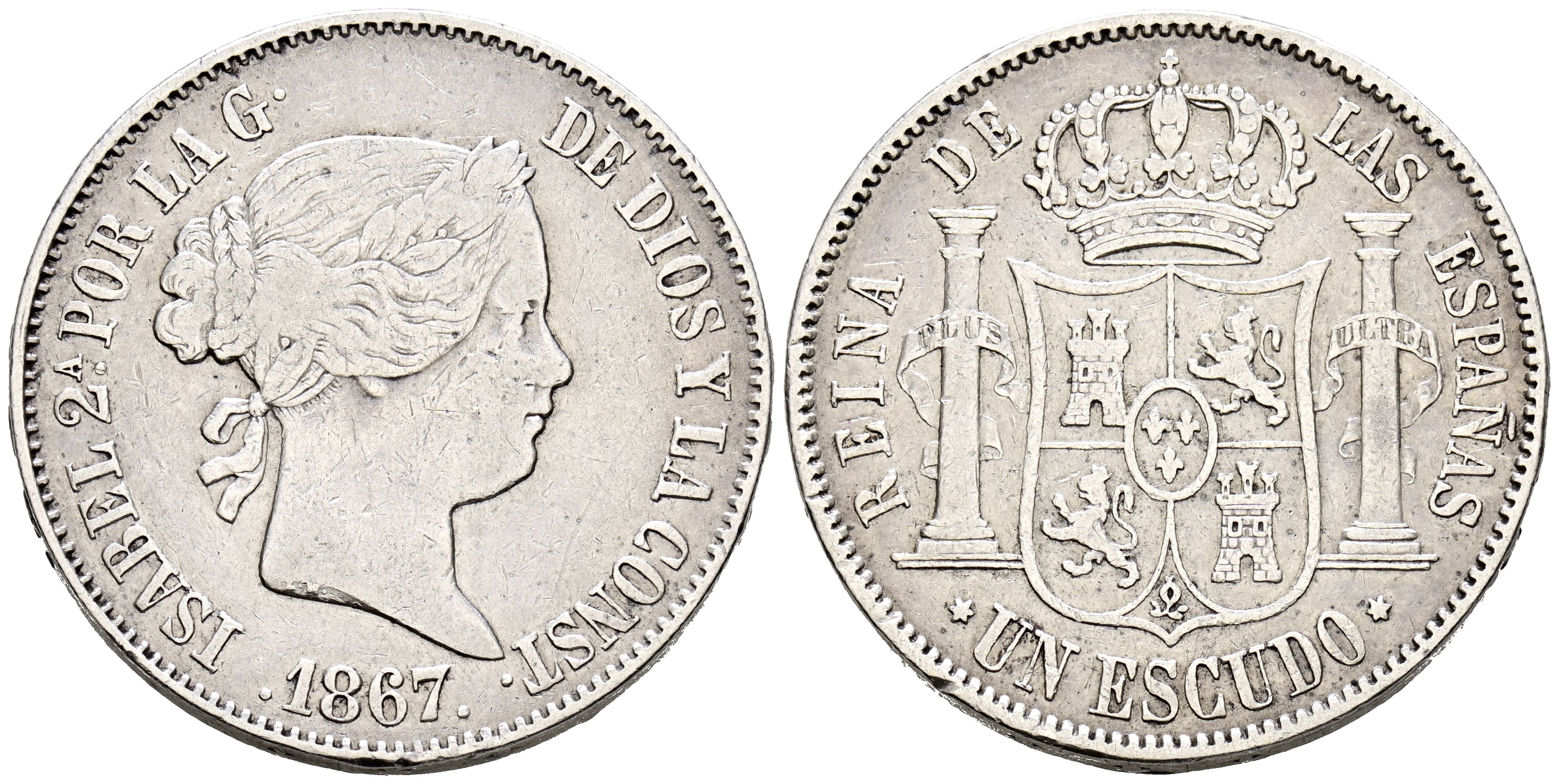 ELIZABETH II (1833-1868). 1 Shield. (Ar. 12.86g /29mm). 1867. Madrid. (Cal-2019-565). Very Fine.