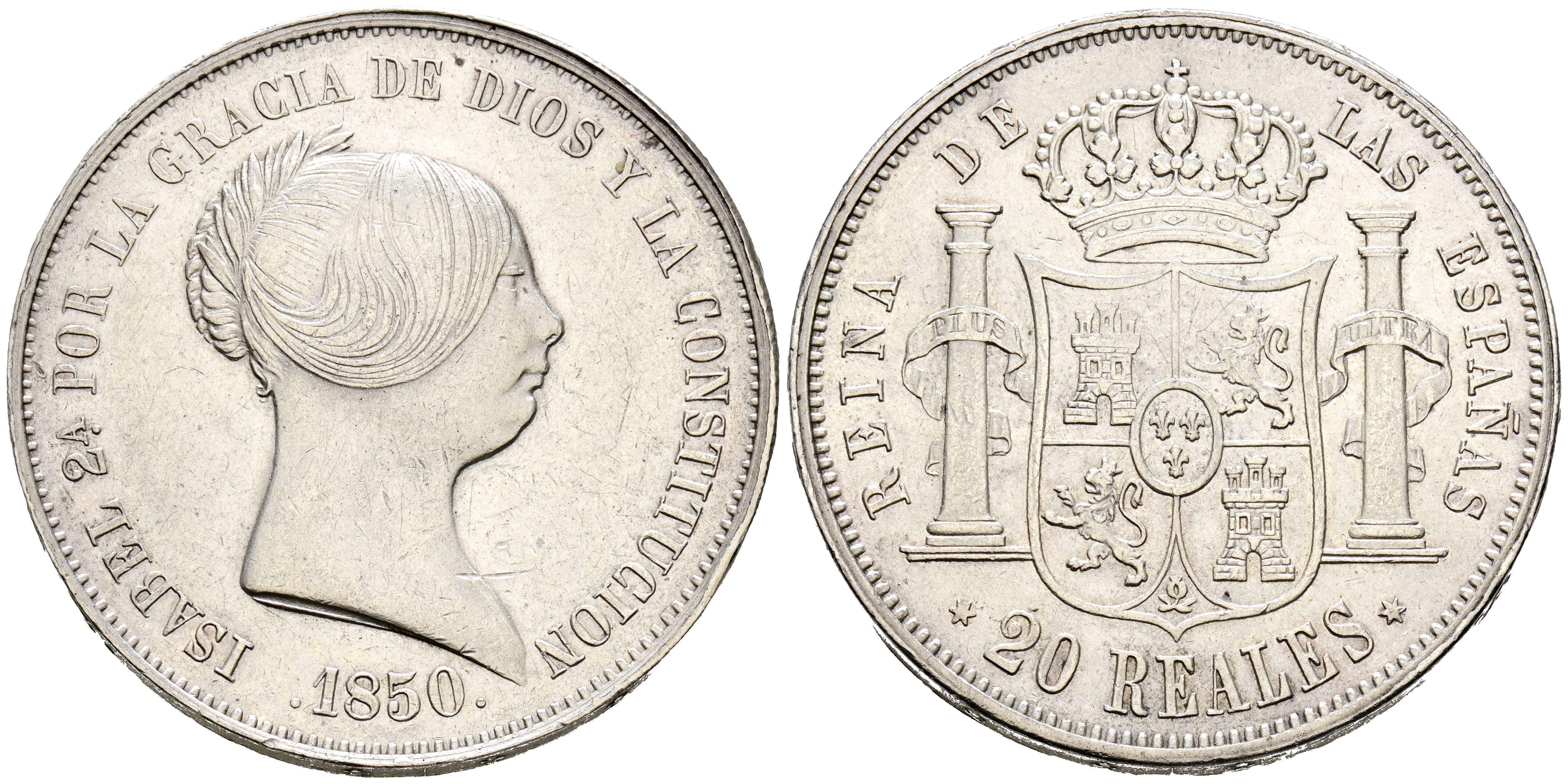 English ISABEL II (1833-1868). 20 Reales. (Ar. 26,12g /37mm). 1850. Madrid. (Cal-2019-592). Extremely Fine-.