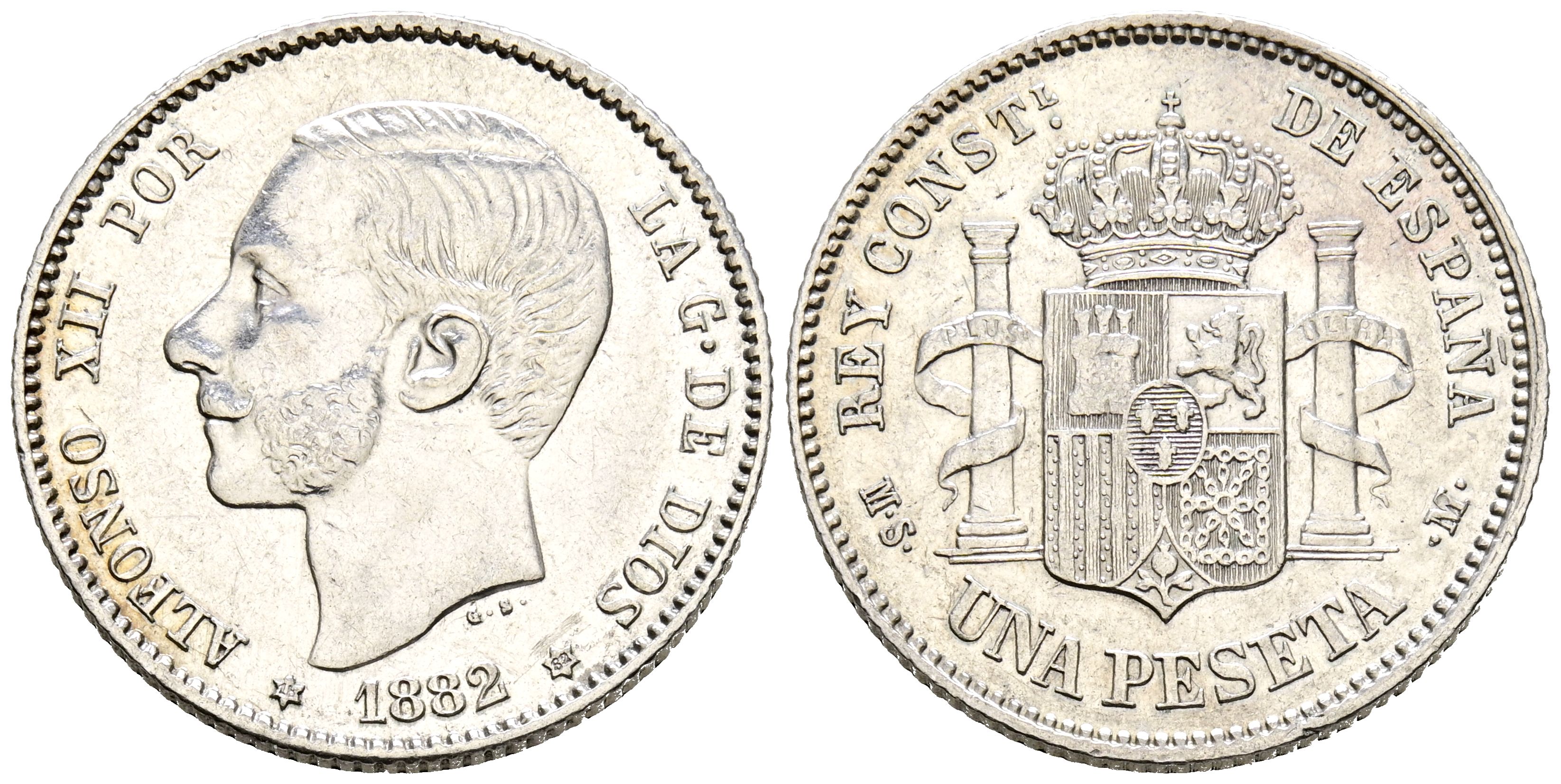 ALFONSO XII (1874-1885). 1 Peseta. (Ar. 4,95/23mm). 1882 *18-82. Madrid MSM. (Cal-2019-20). Good Very Fine. Cleaned. Scarce.