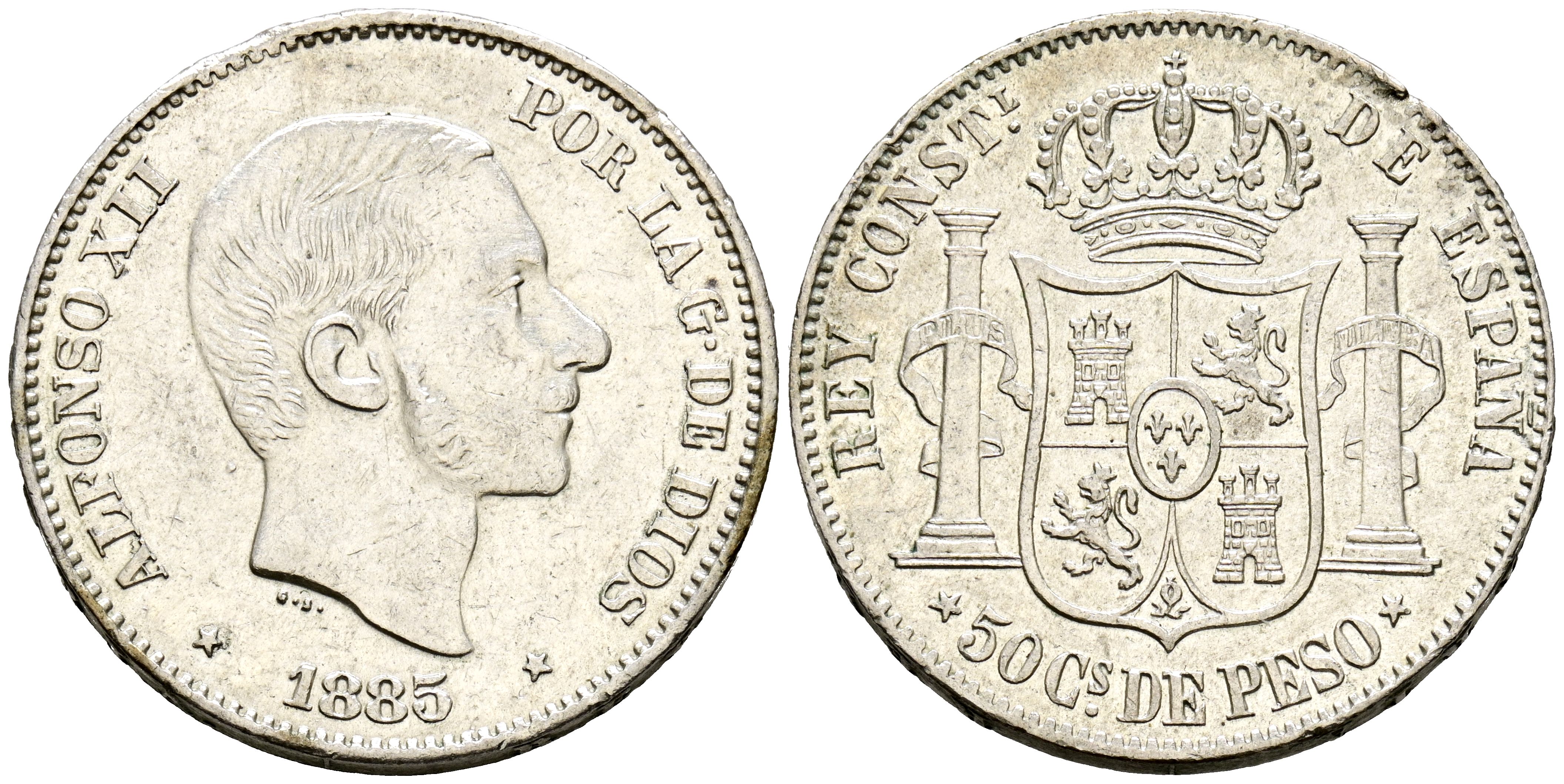 ALFONSO XII (1874-1885). 50 Cents. (Ar. 12.84g/30mm). 1885. Manila. (Cal-2019-124). Good Very Fine.