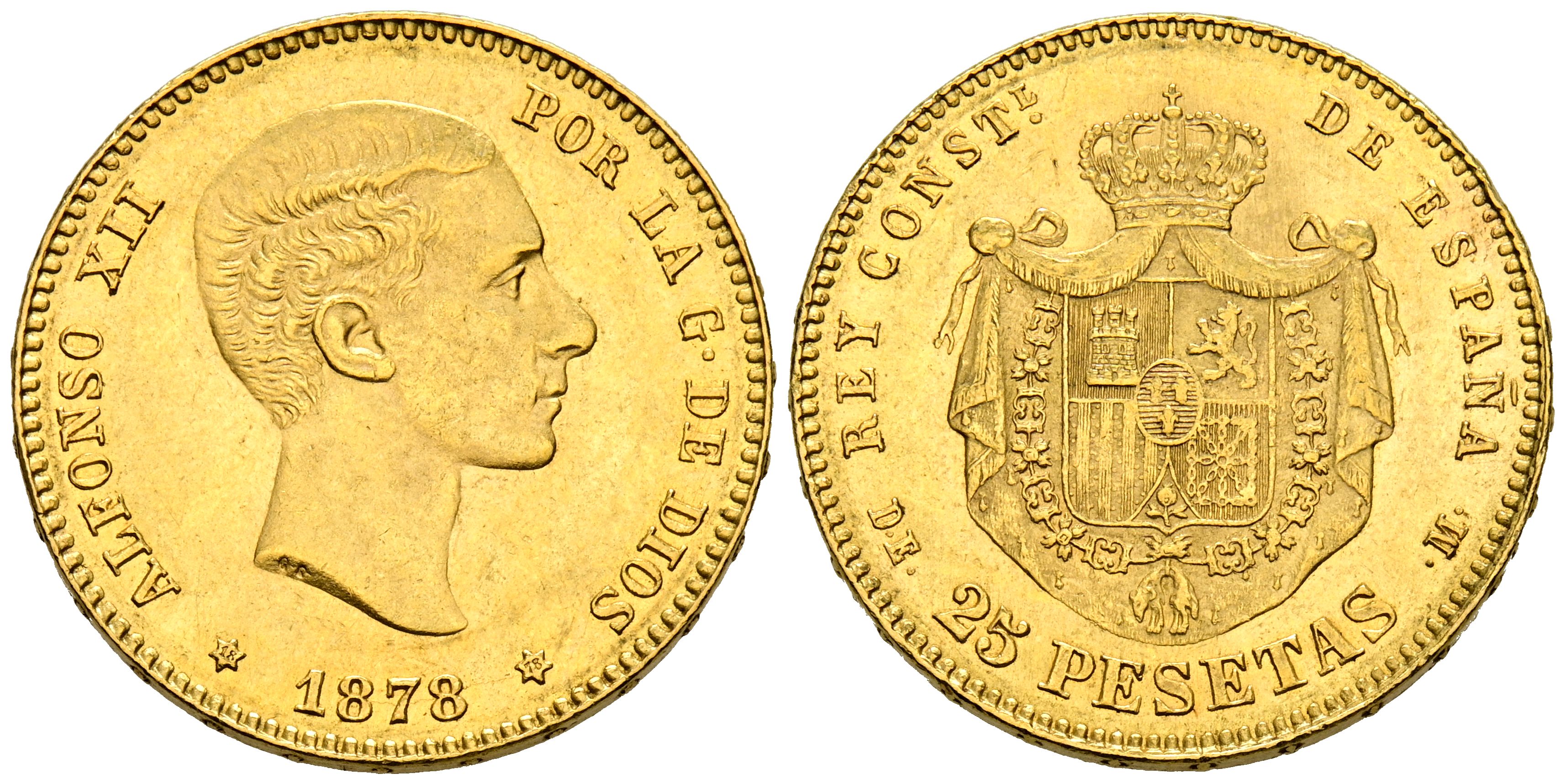 ALFONSO XII (1874-1885). 25 Pesetas. (Au. 8.06g/24mm). 1878 *18-78. Madrid DEM. (Cal-2019-70). Extremely Fine-.