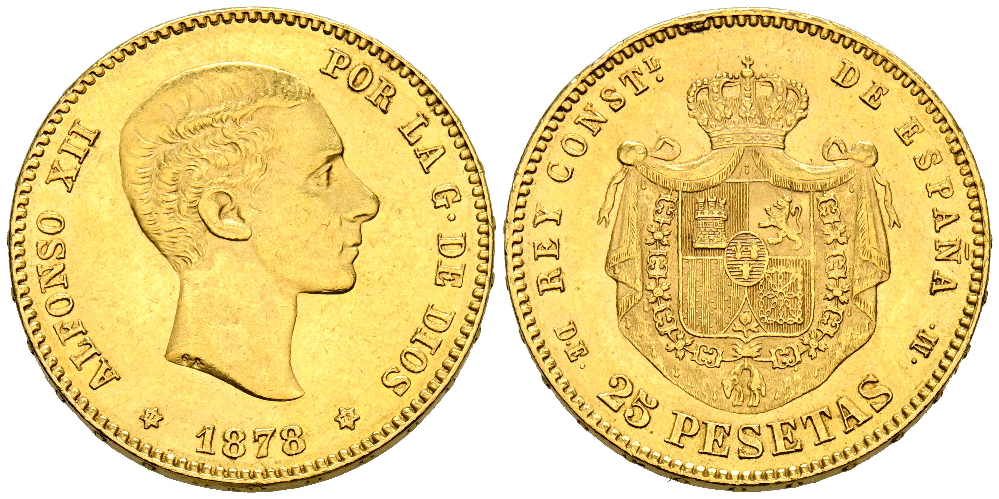 English ALFONSO XII (1874-1885). 25 Pesetas. (Au. 8.06g/24mm). 1878 *18-78. Madrid DEM. (Cal-2019-70). Good Very Fine/Extremely Fine-.