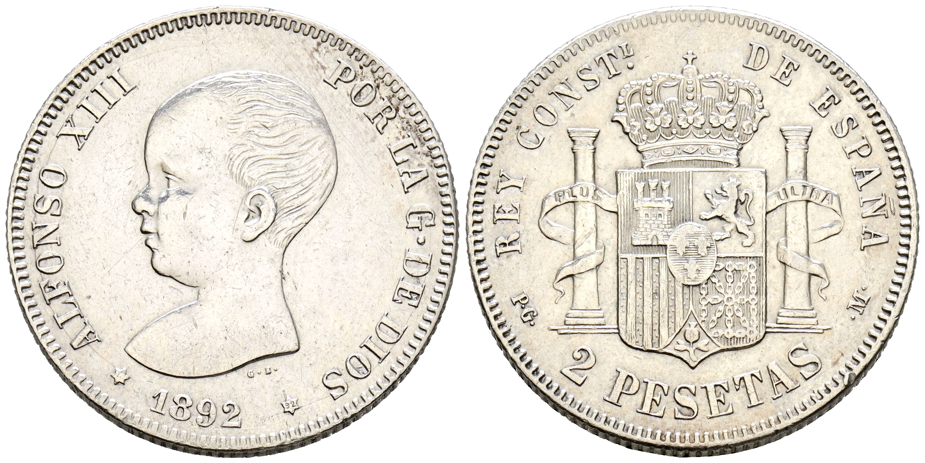 ALFONSO XIII (1885-1931). 2 Pesetas. (Ar. 9,97g/27mm). 1891 *18-91. Madrid PGM. (Cal-2019-84). Very weak first star. VF+. Cleaned. Very scarce.