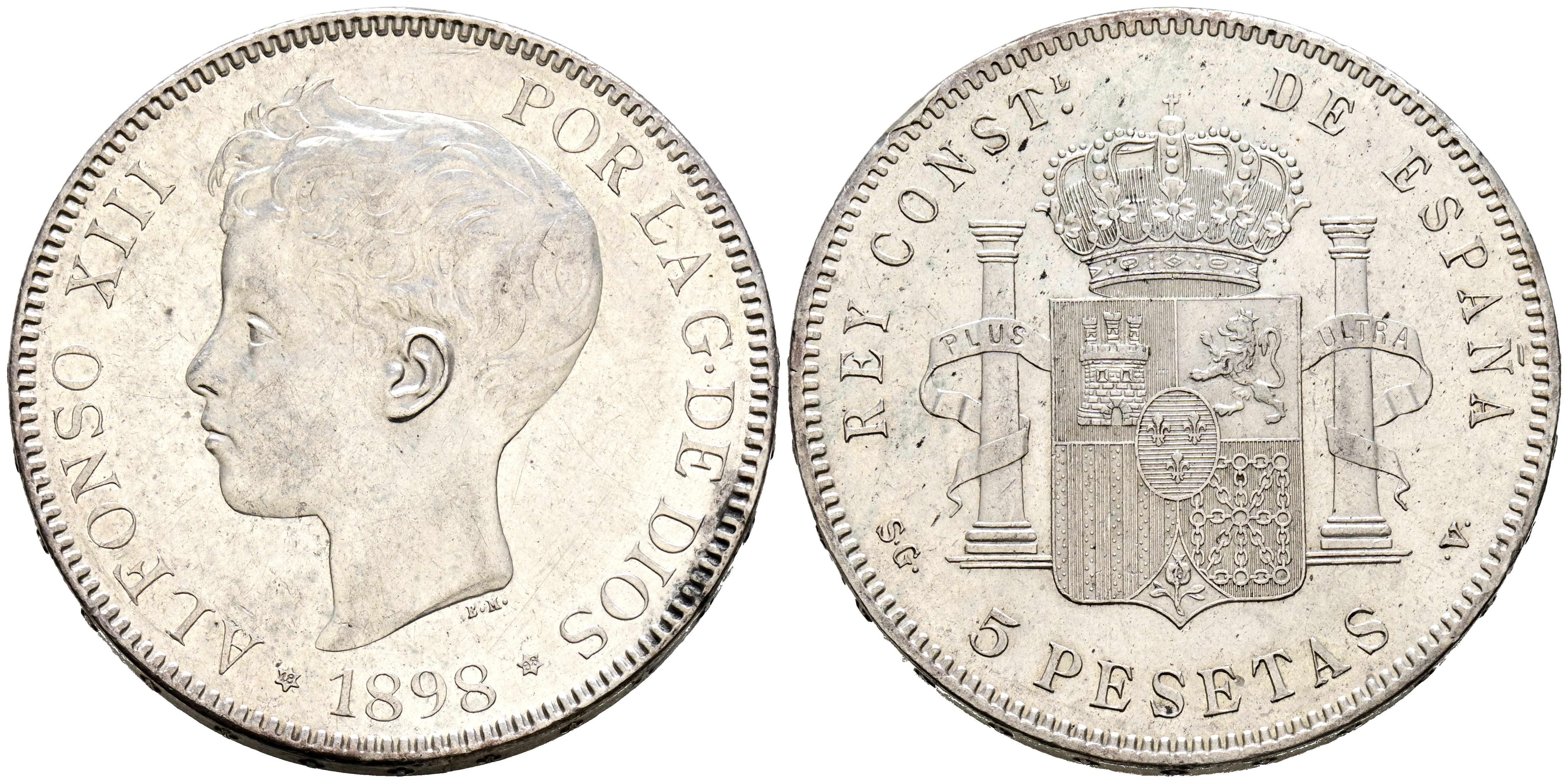 ALFONSO XIII (1885-1931). 5 Pesetas. (Ar. 24,90g/37mm). 1898 *18-98. Madrid SGV. (Cal-2019-109). Extremely Fine/Good Extremely Fine. Light scratches on obverse.