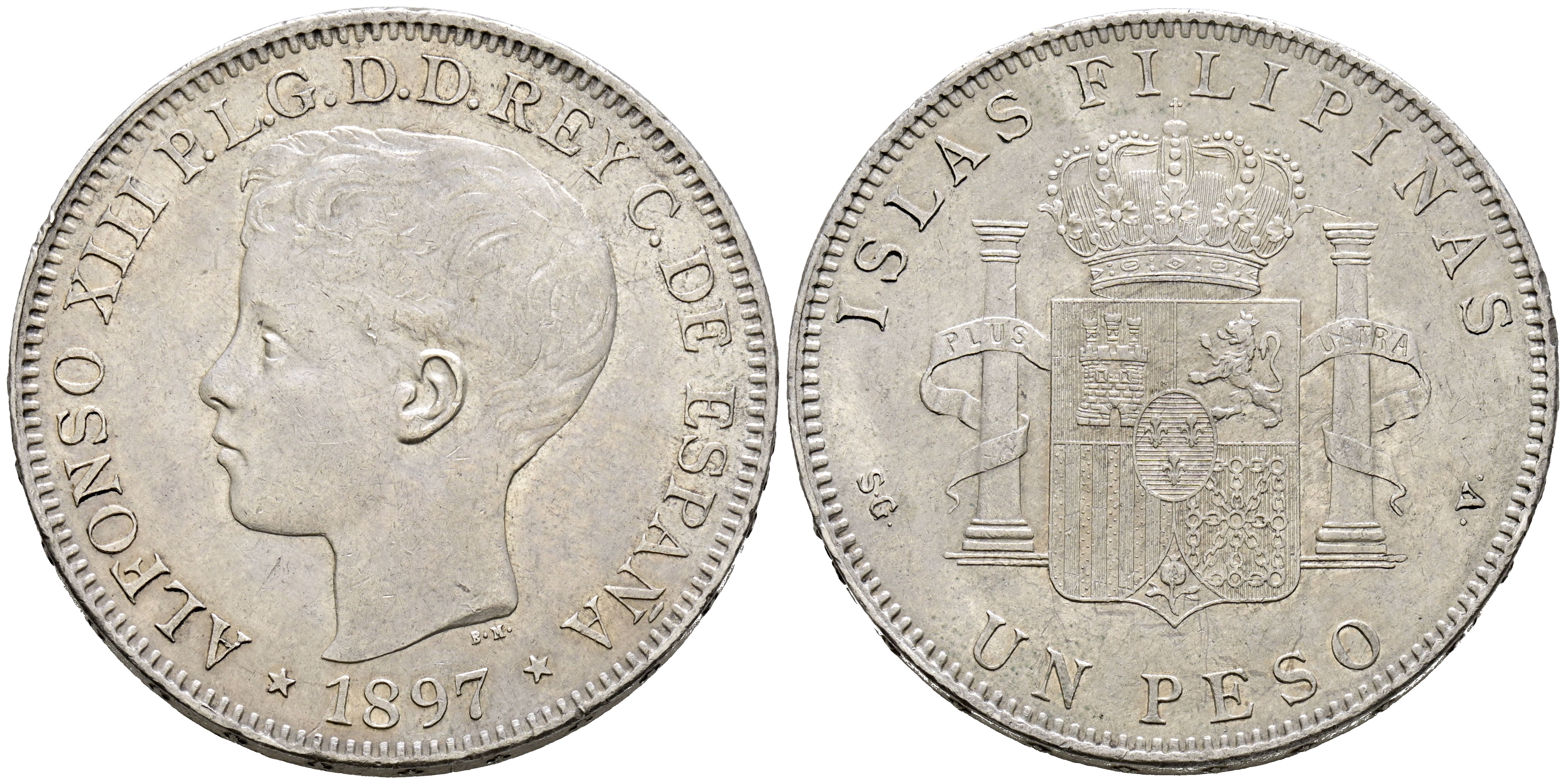 ALFONSO XIII (1885-1931). 1 Weight. (Ar. 25.08g/37mm). 1897. Manila SGV. (Cal-2019-122). Extremely Fine-. Nice patina.