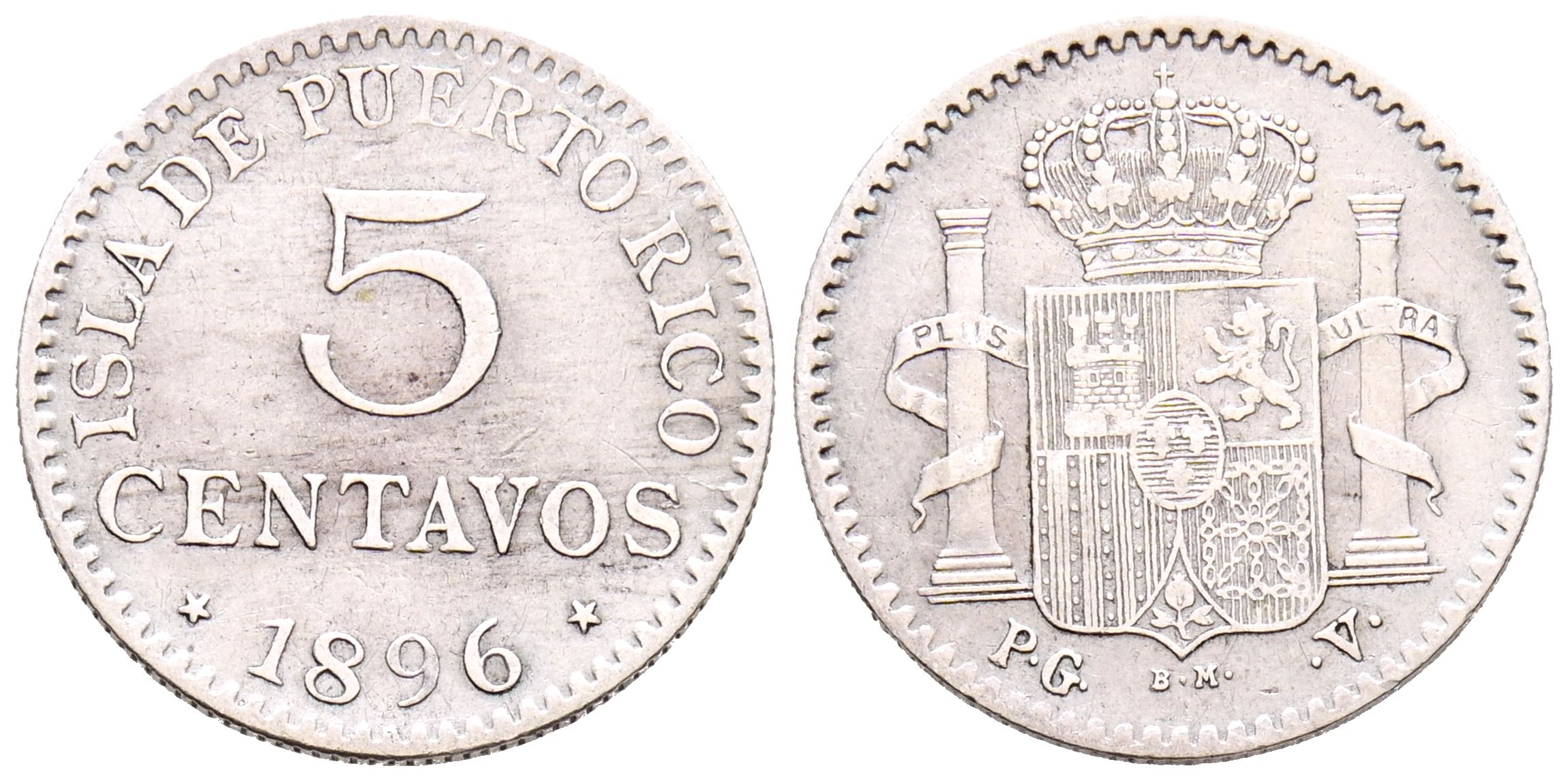 English ALFONSO XIII (1885-1931). 5 Cents. (Ar. 1.22g/16mm). 1896. Puerto Rico PGV (Cal-2019-124). Good Very Fine/Very Fine.