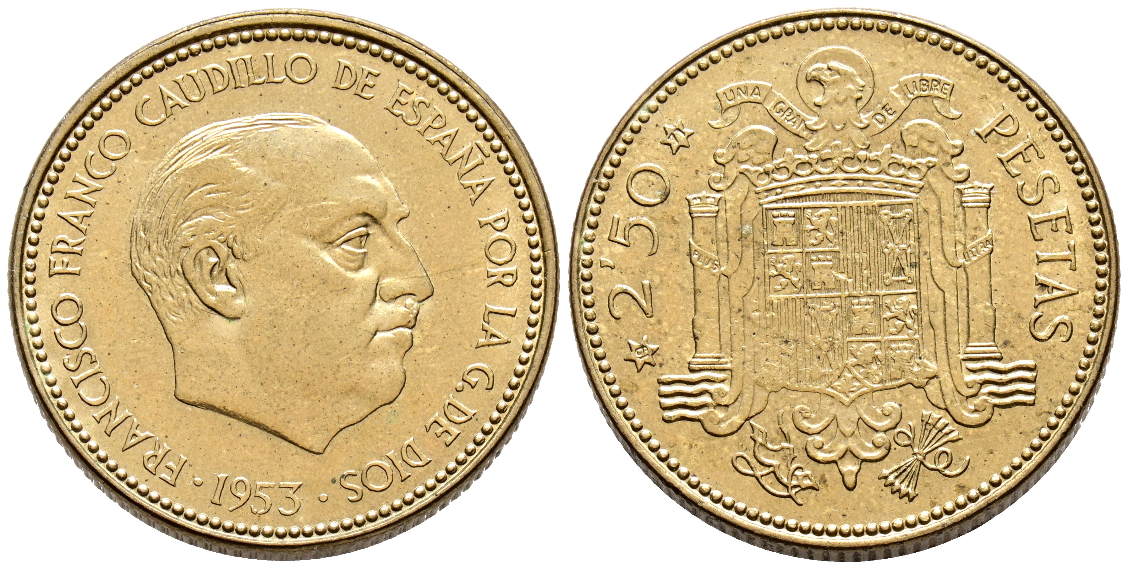 SPANISH STATE (1936-1975). 2.50 Pesetas. (AlCu. 7.13g/25mm). 1953 *19-71. Madrid. (Cal-2019-90). Good Extremely Fine. Scarce.