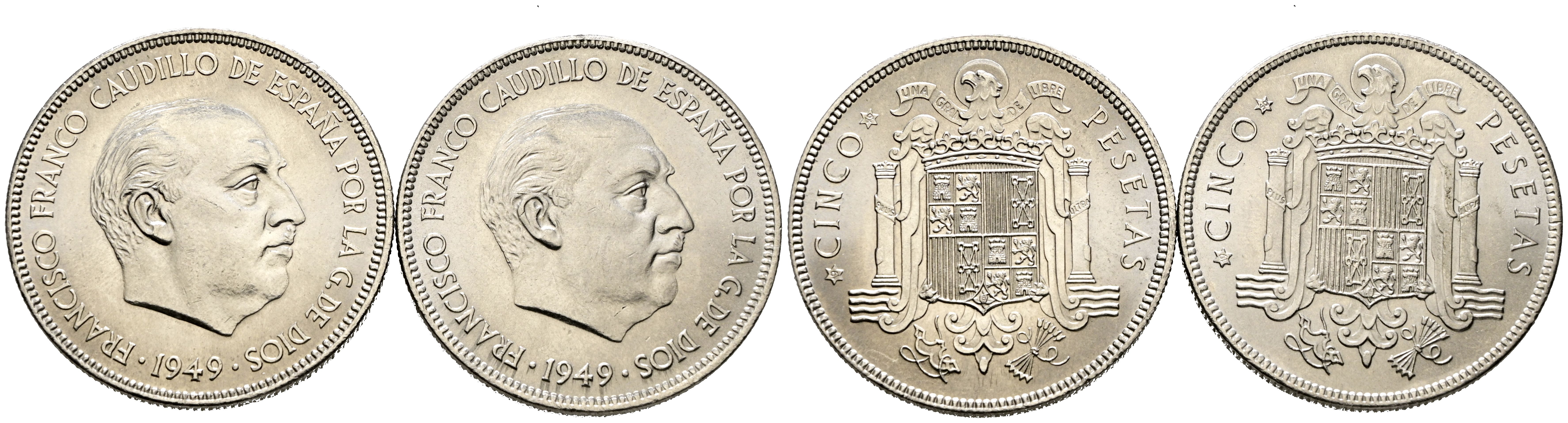 SPANISH STATE (1936-1975). Pair of 5 Pesetas from 1949 *49 and *50. (Cal-2019-94-95). Excellent general condition. TO BE EXAMINED.