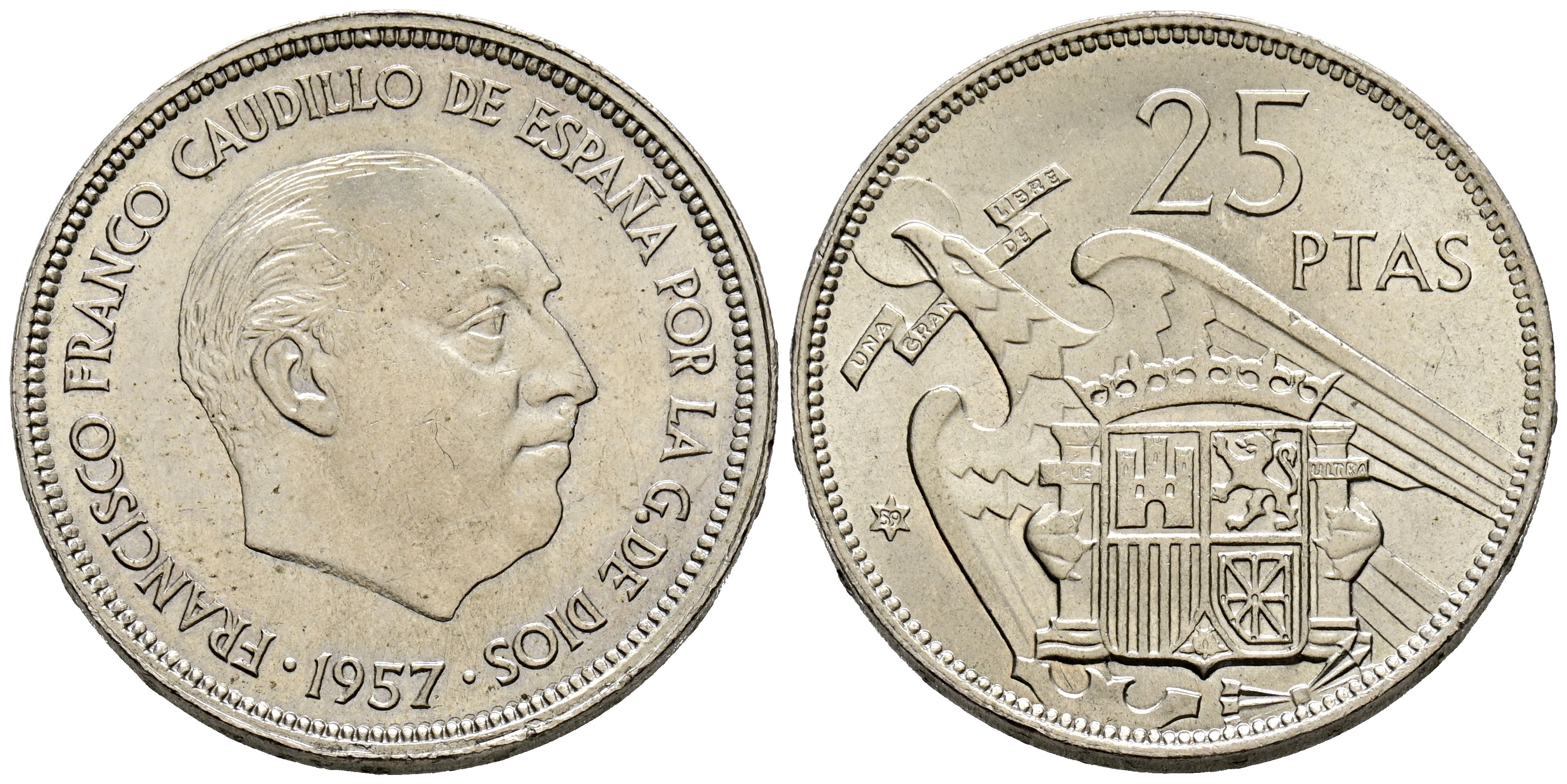 SPANISH STATE (1936-1975). 25 Pesetas. (Ni. 8.52g/27mm). 1957 *59. Madrid. (Cal-2019-117). Uncirculated-.