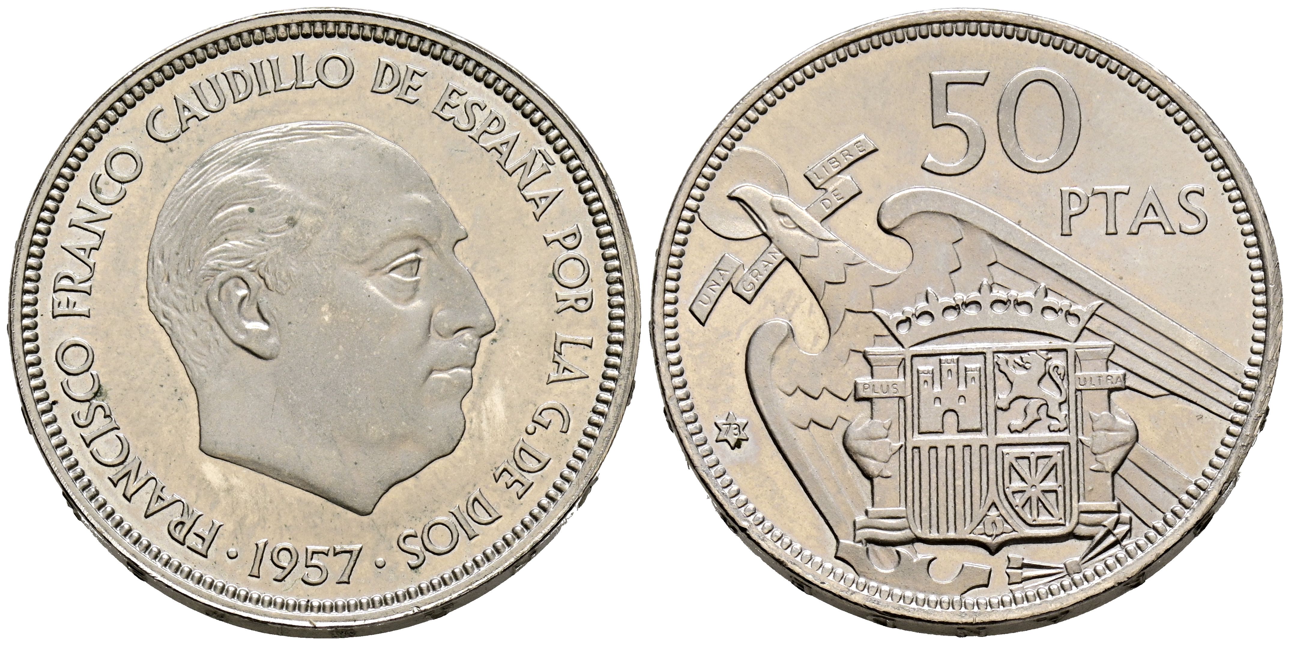 SPANISH STATE (1936-1975). 50 Pesetas. (Ni. 12.36g/30mm). 1957 *73. Madrid. (Cal-2019-142). Uncirculated.
