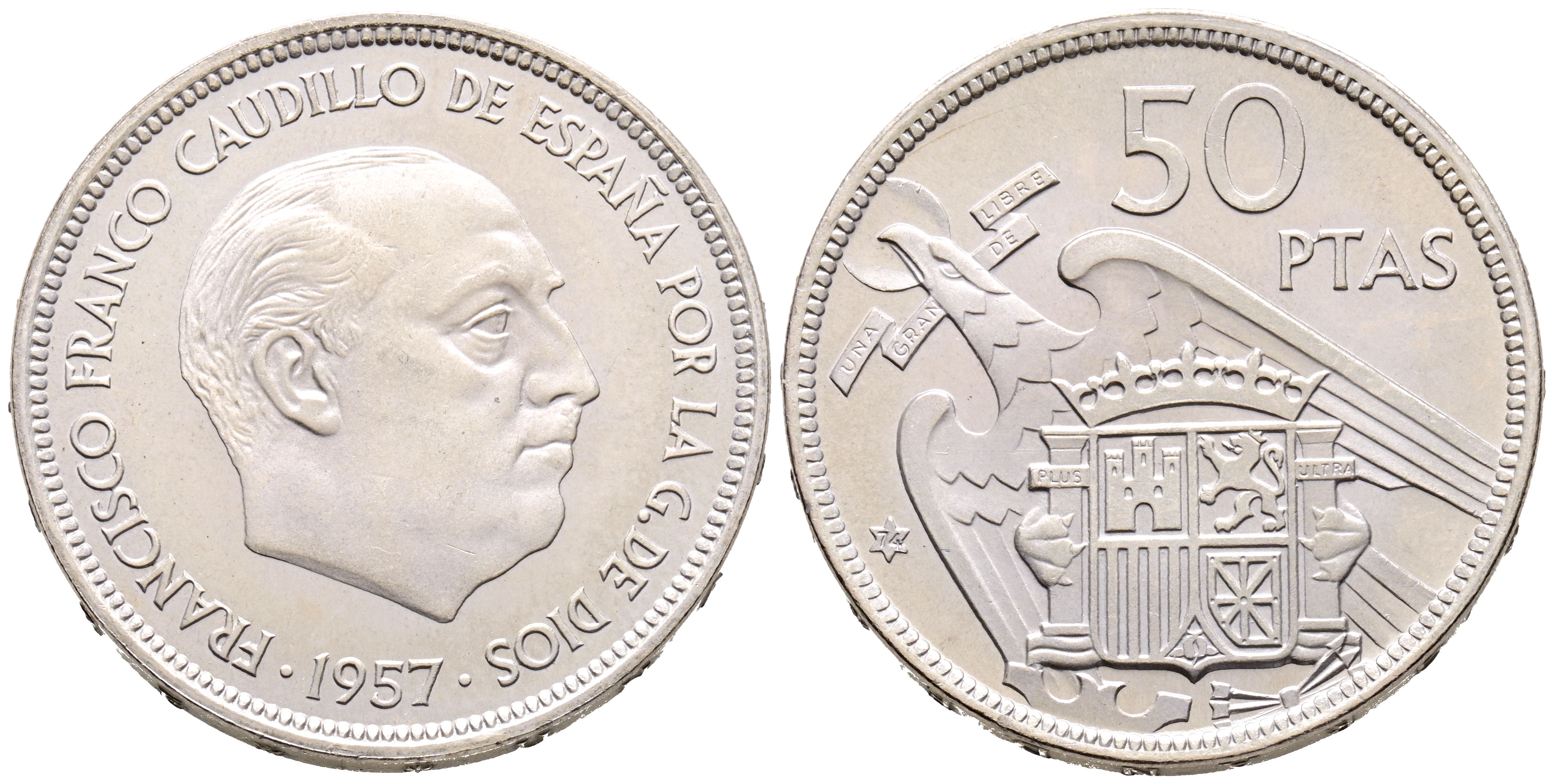 SPANISH STATE (1936-1975). 50 Pesetas. (Ni. 12.49g/30mm). 1957 *74. Madrid. (Cal-2019-143). Uncirculated.
