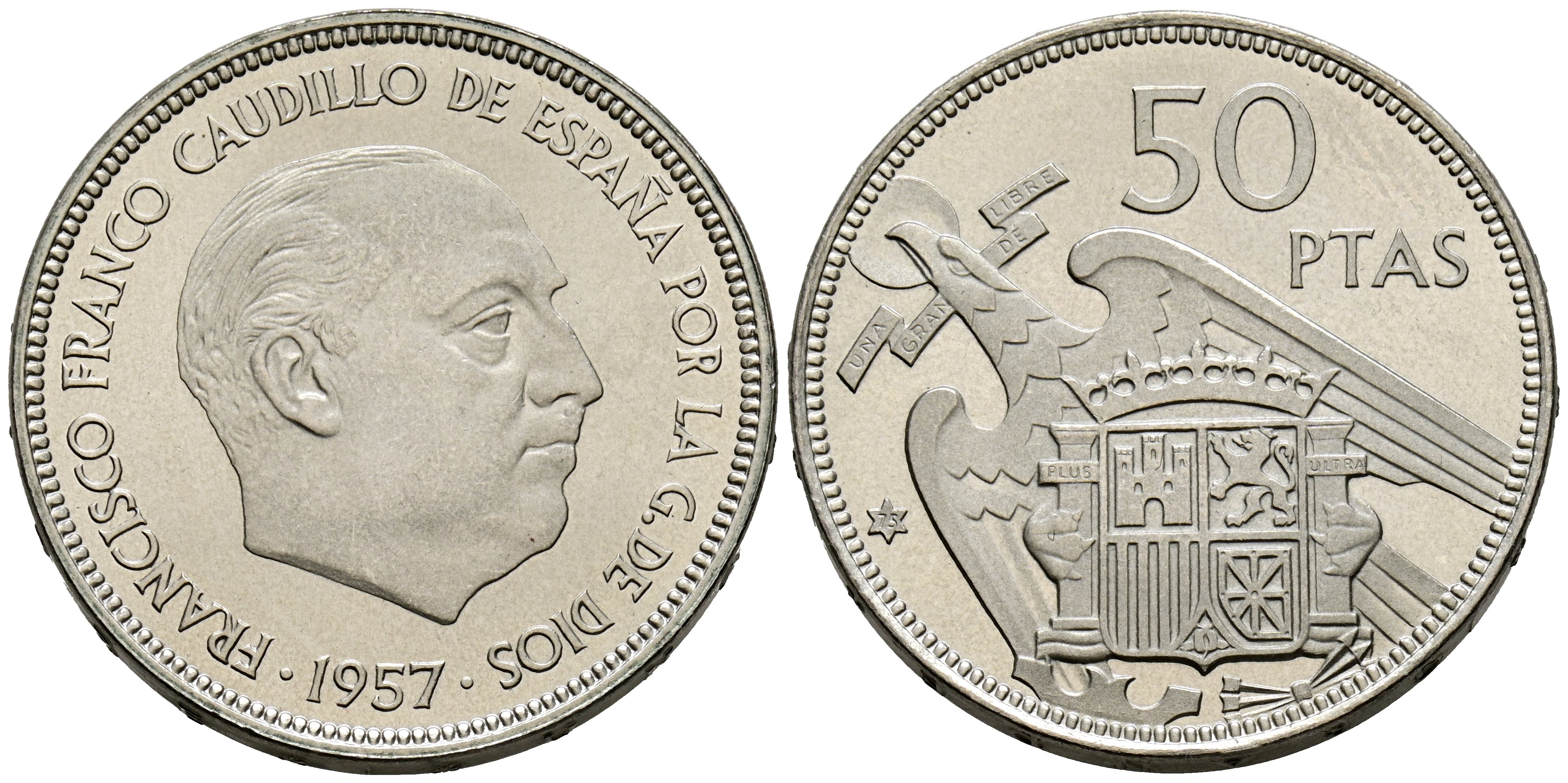 SPANISH STATE (1936-1975). 50 Pesetas. (Ni. 12.42g/30mm). 1957 *75. Madrid. (Cal-2019-144). Uncirculated