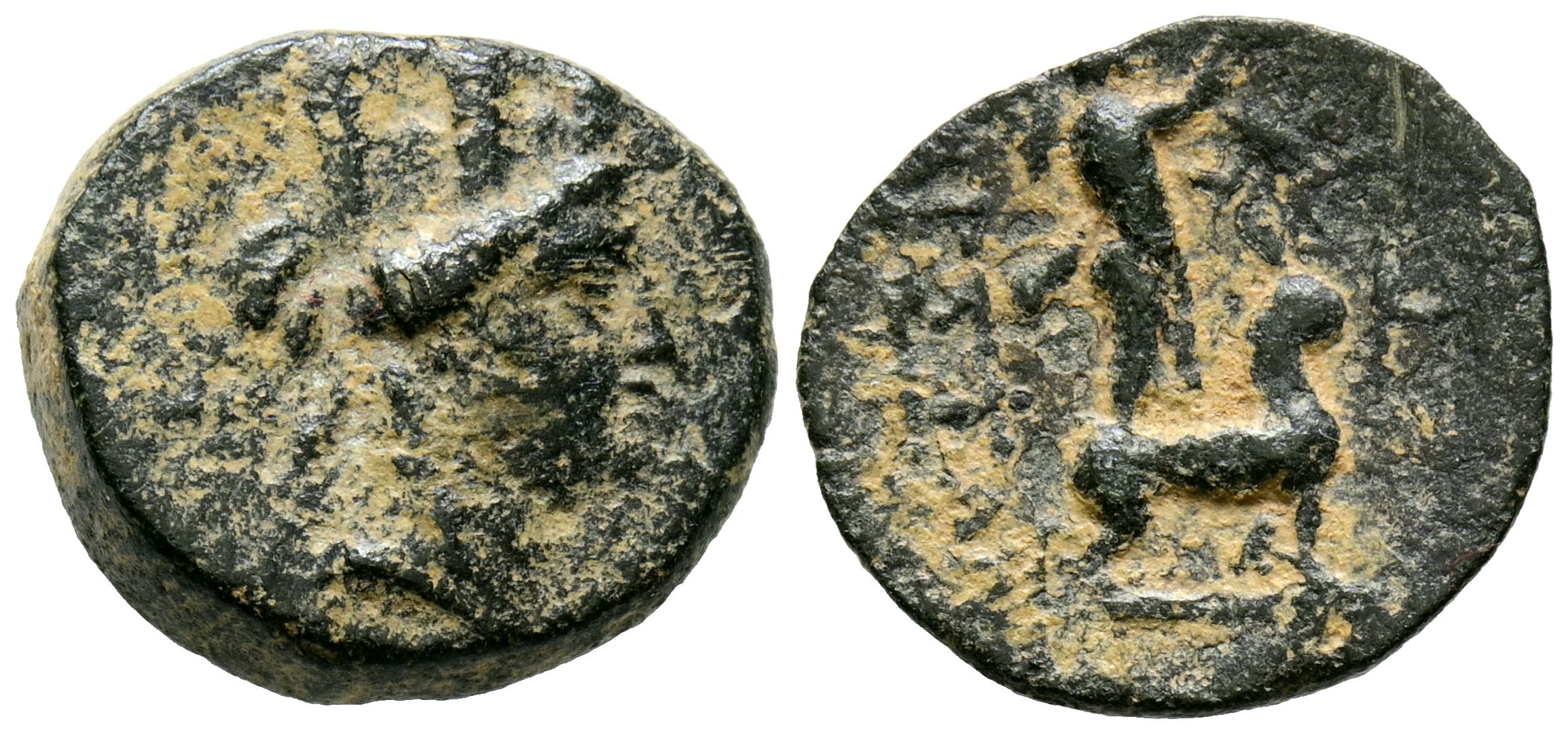 CILICA, Tarsos. Ae16. (Ae. 3.25g/16mm). 164-27 Fine (SNG France 1303). Obv: Veiled bust with mural crown of Tyche right. Rev: Sandan standing right on a goat, monogram behind, Greek legend in front: TAPΣEΩN. VF.
