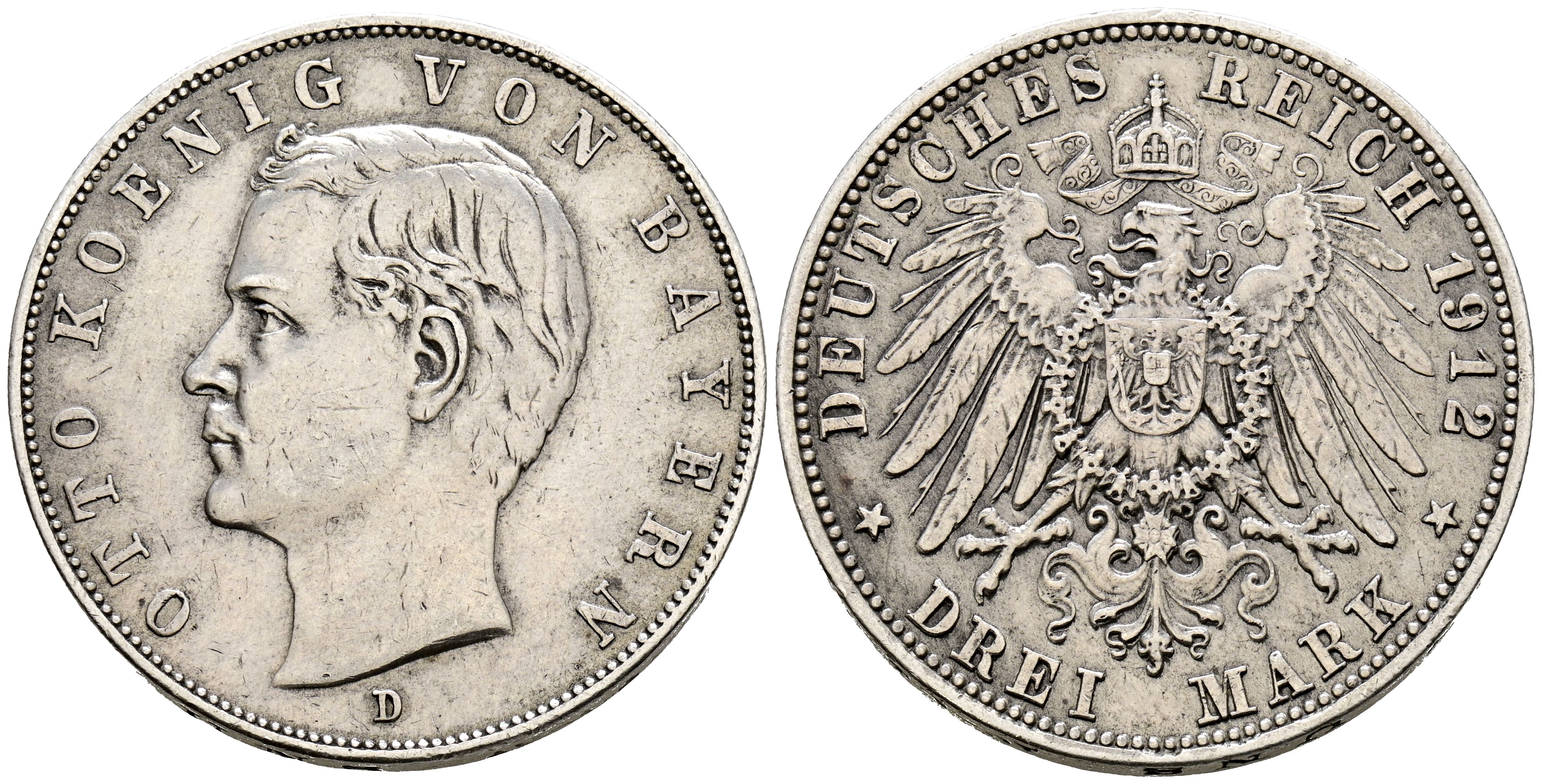 GERMANY. 3 Marks. (Ar. 16.67g/33mm). 1912. Otto I. Munich D. (Km#515). Very Fine.