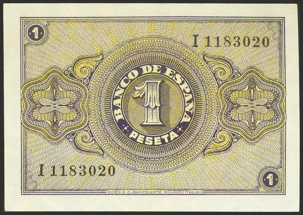 English 1 Peseta. April 30, 1938. Series I. (Edifil 2021: 428a). Original marking. Uncirculated.