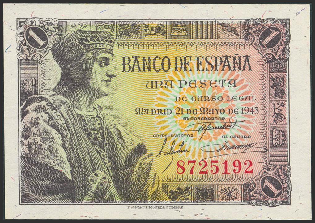 English 1 Peseta. May 21, 1943. No series. (Edifil 2023: 447). Original marking. Uncirculated.