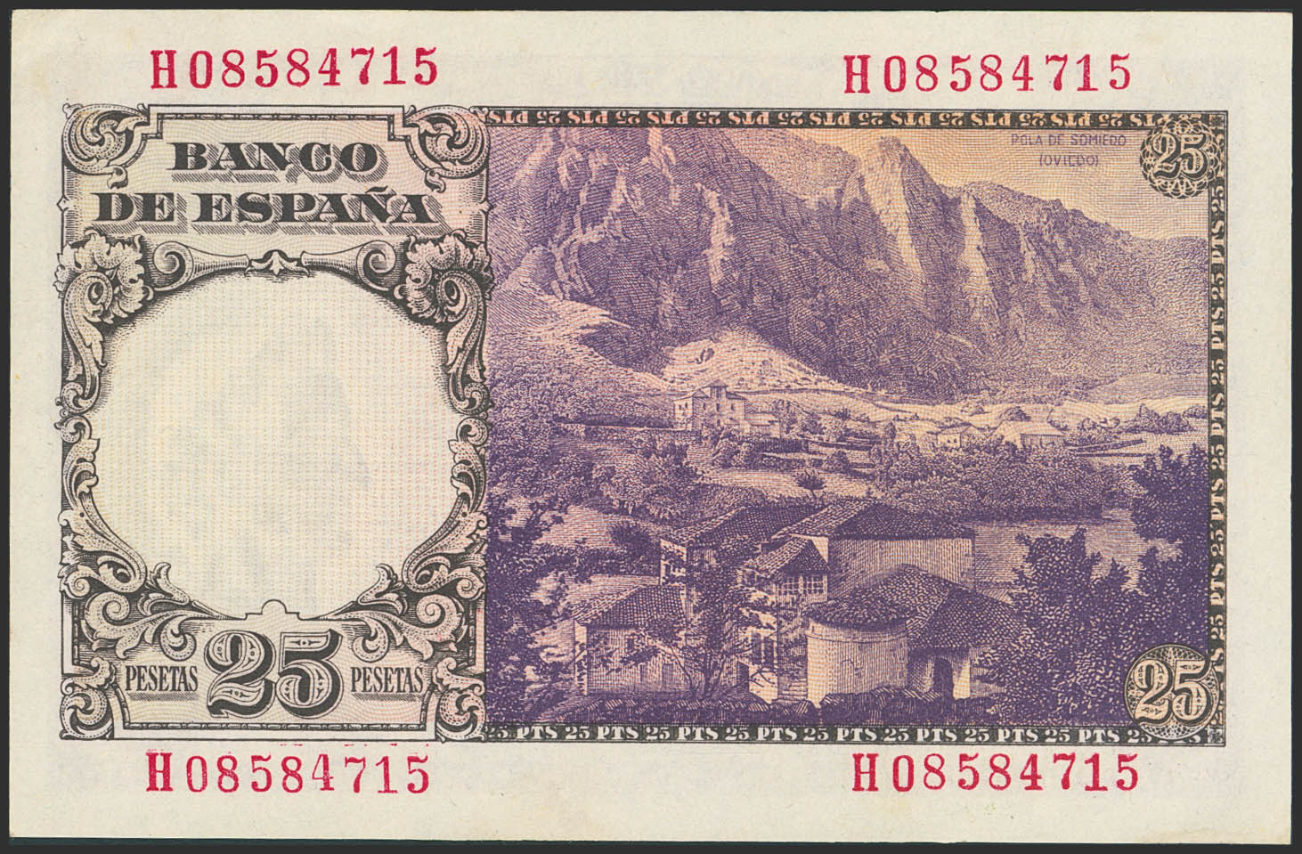 25 Pesetas. February 19, 1946. Series H. (Edifil 2021: 450a). Original marking. Uncirculated-.