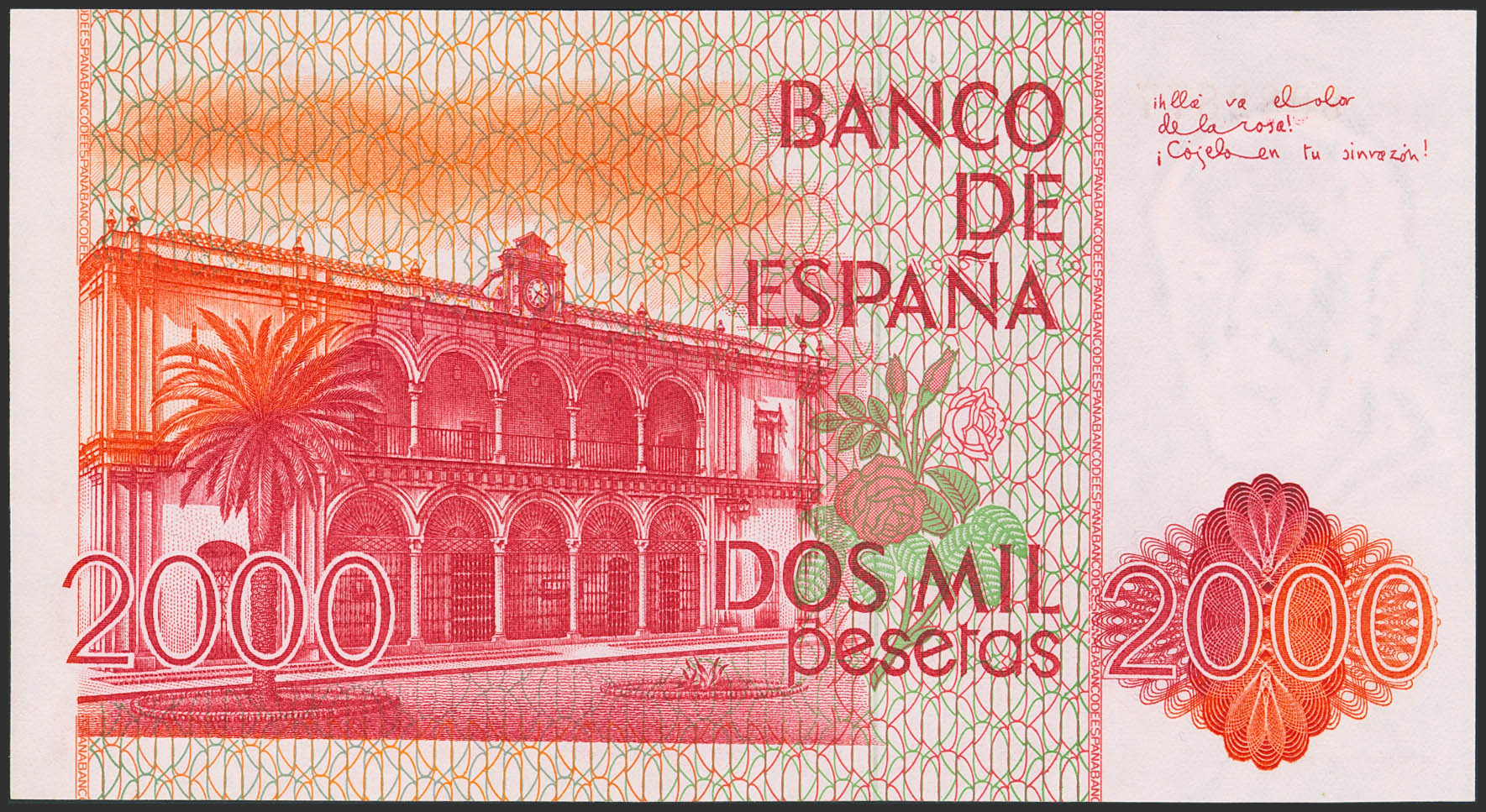 2000 Pesetas. July 22, 1980. Without series and low numbering. (Edifil 2023: 479). Uncirculated-.
