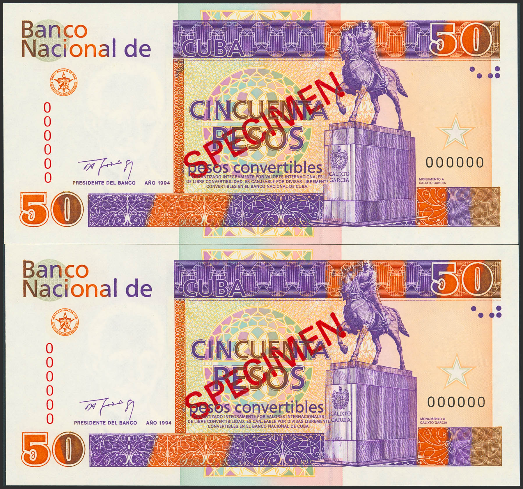 English CUBA. 50 Pesos. 1994. SPECIMEN. (Pick: FX42s(2)). Uncirculated.