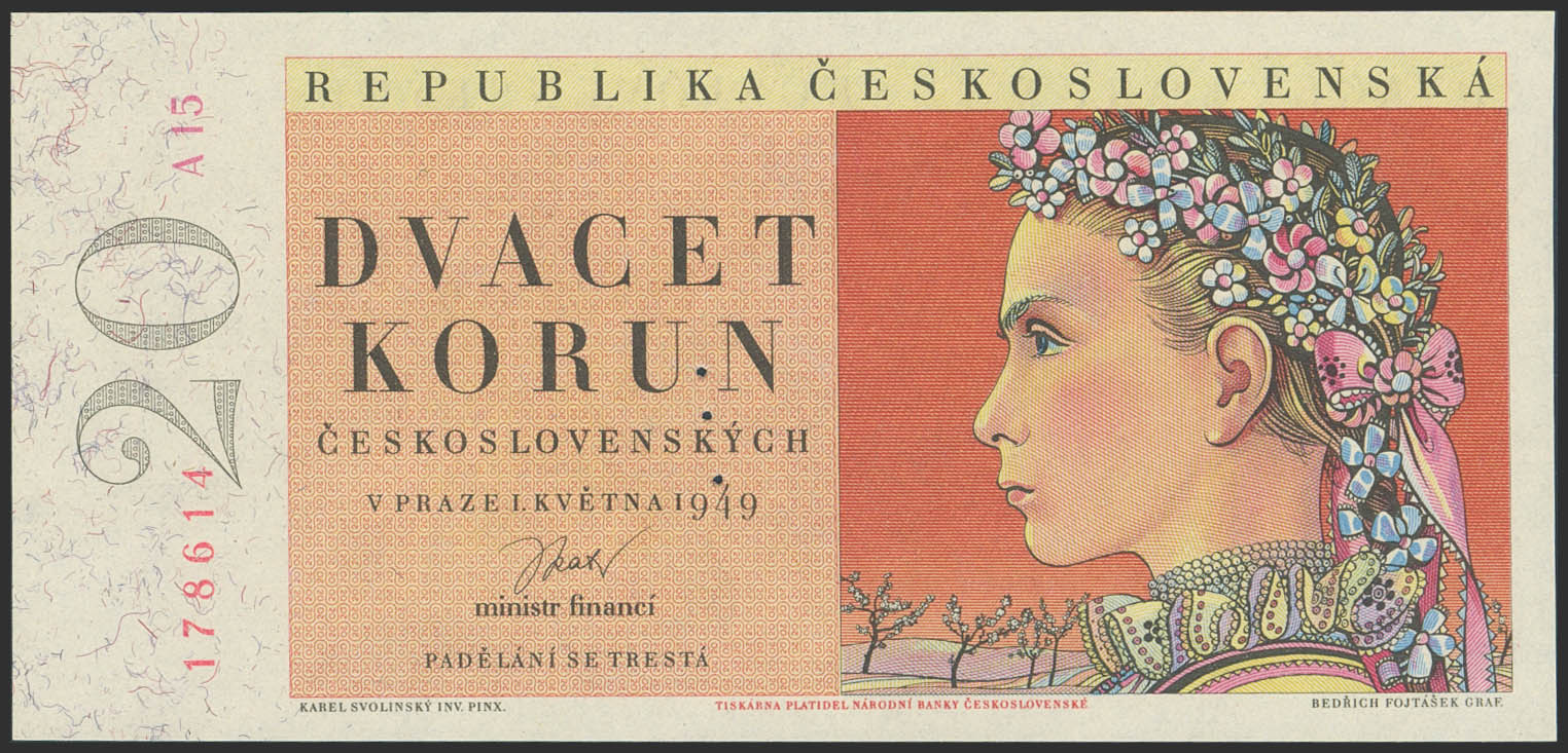 CZECHOSLOVAKIA. 200 Korun. 1949. (Pick: 70). 3 holes. Extremely Fine.