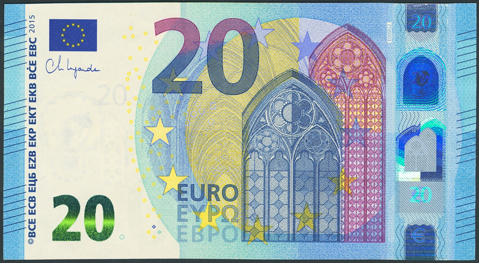 SLOVAKIA. 20 Euros. 2015. Signature Lagarde. Serial E (Slovakia). (Pick: 22). Uncirculated.