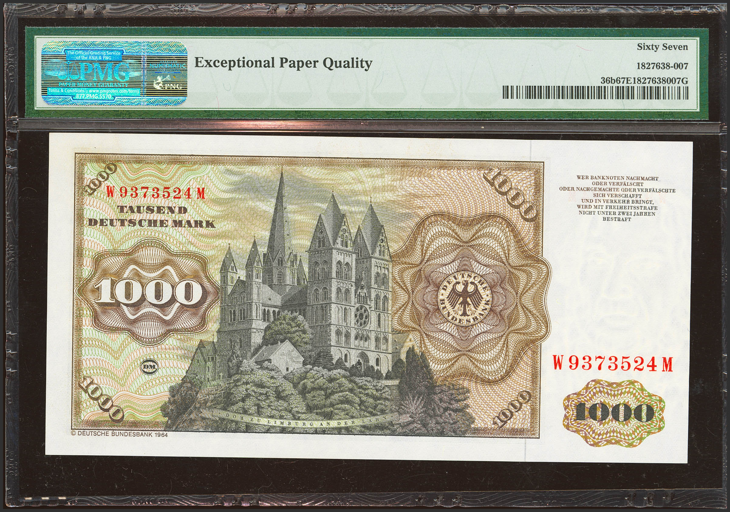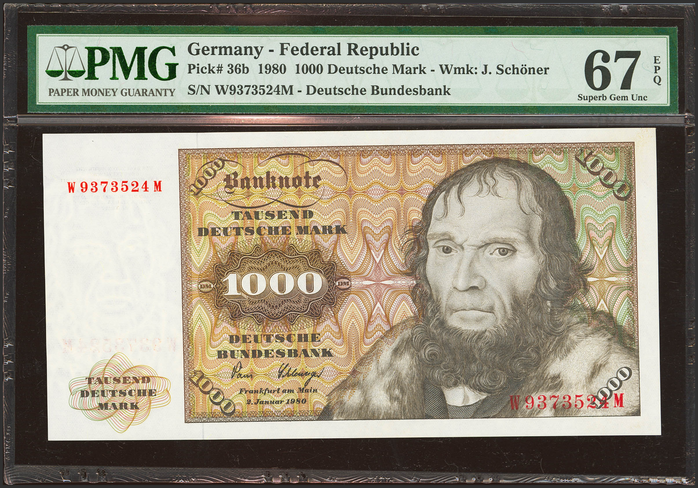 GERMANY. 1000 Marks. 1980. (Pick: 36b). Very rare, especially in this exceptional quality. PMG67EPQ.