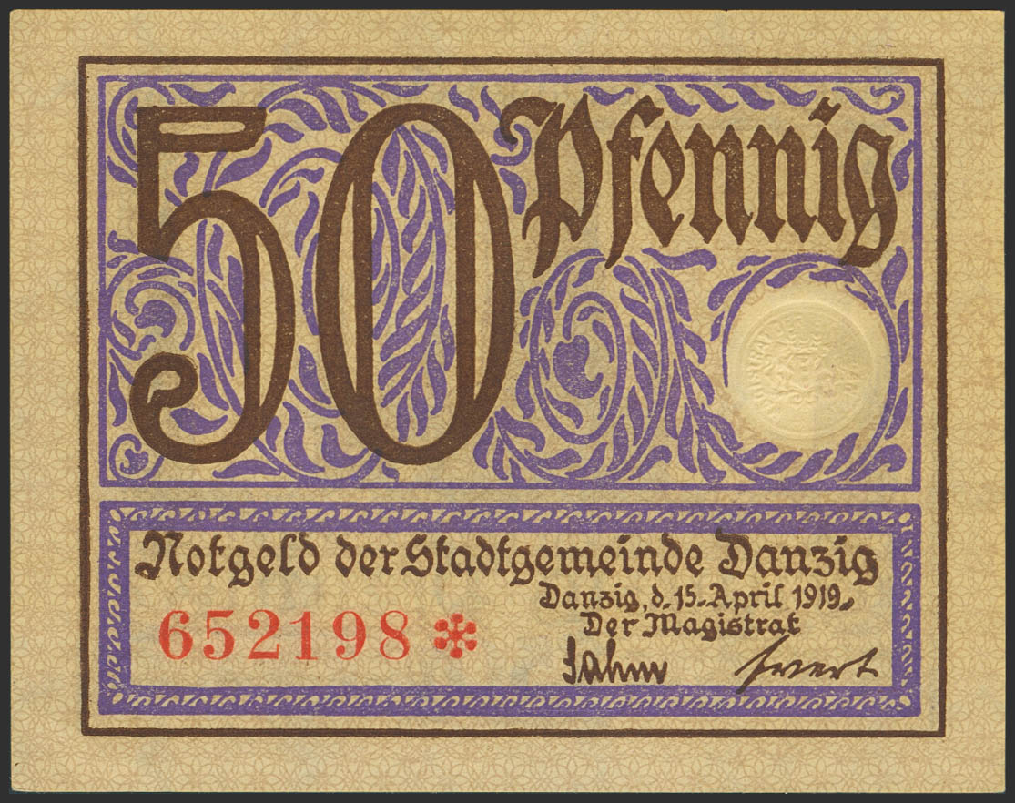DANZIG-NOTGELD. 50 Pfennig. 1919. (Pick: 11). Less than Uncirculated.