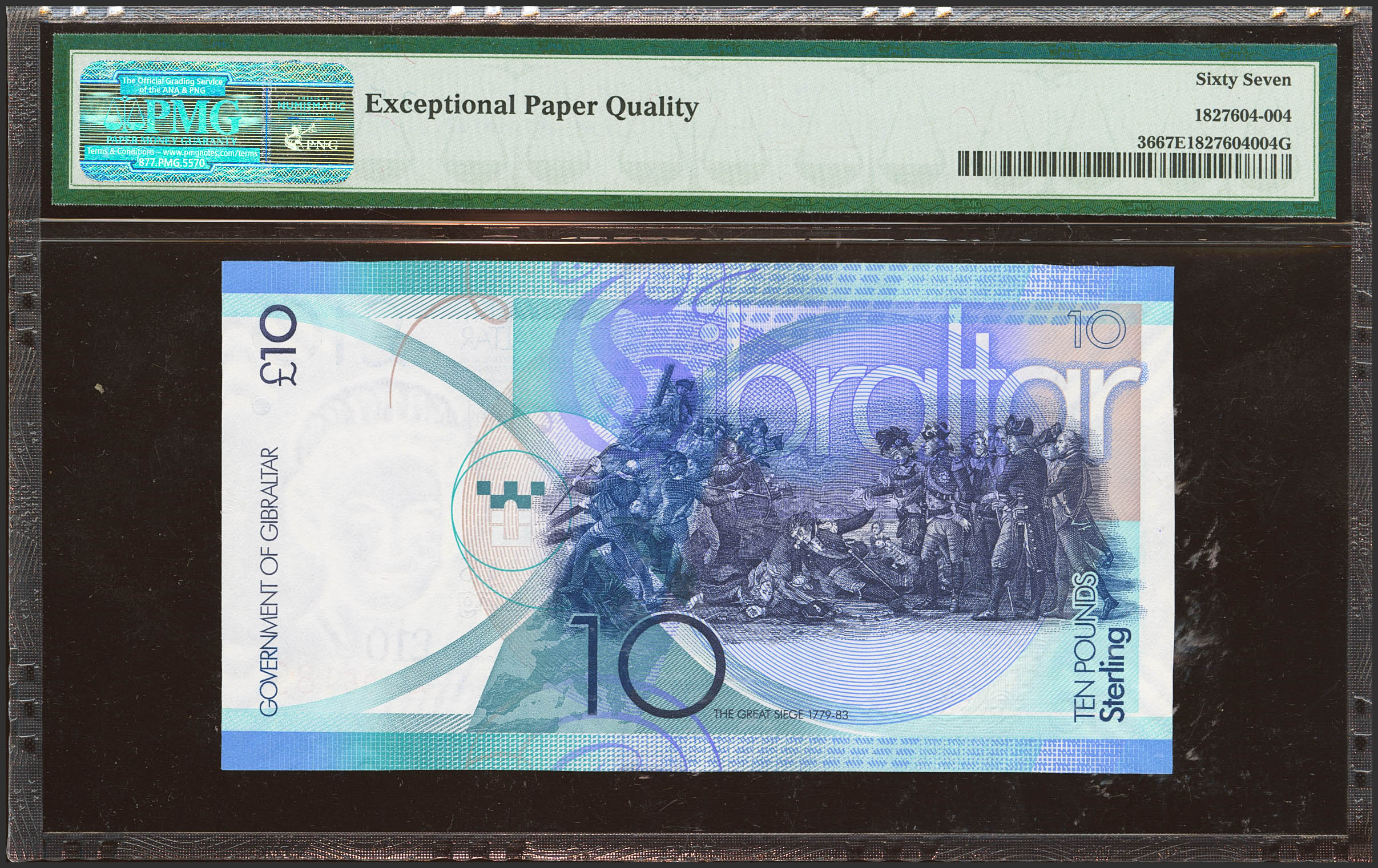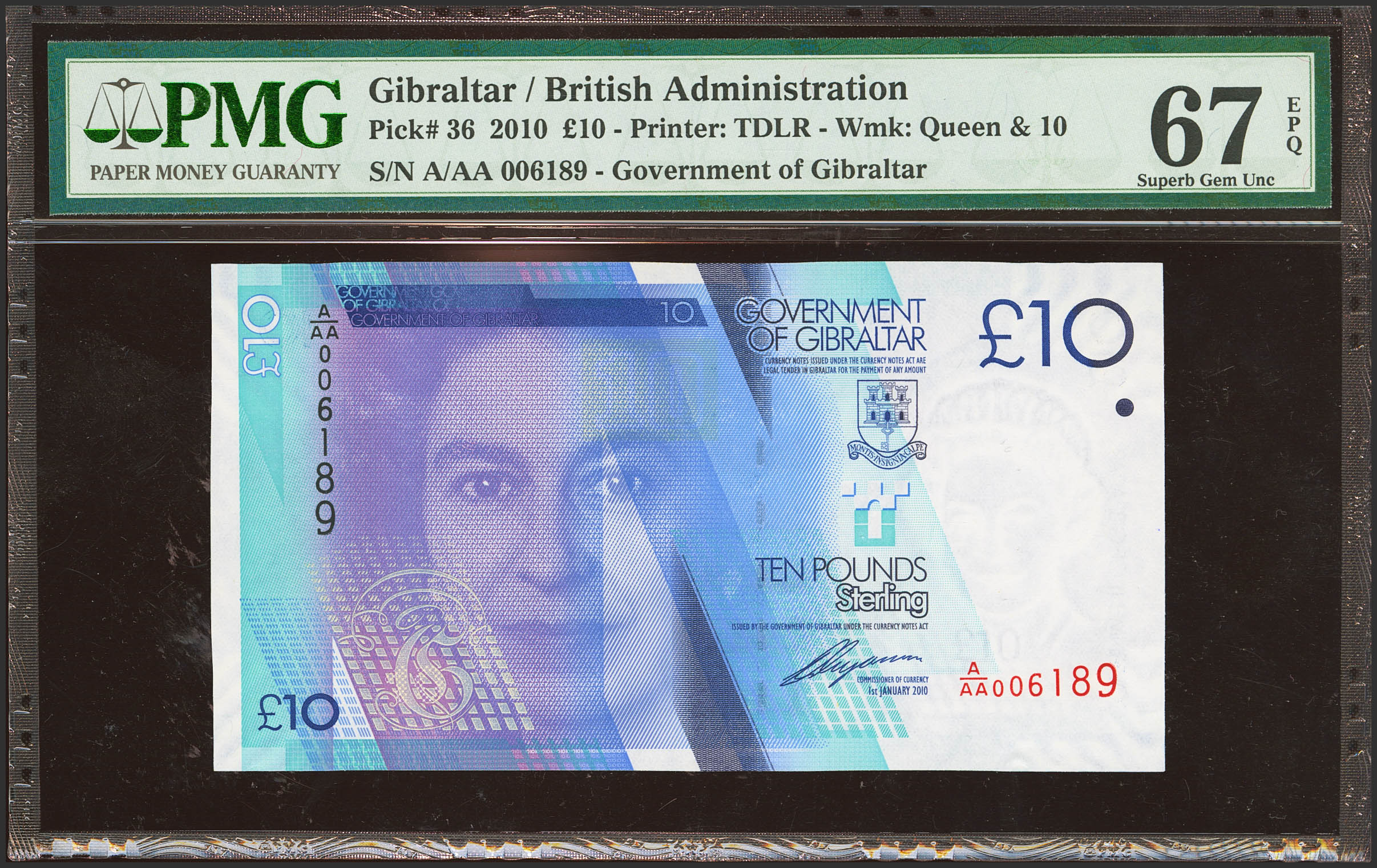 GIBRALTAR. 10 Pounds. 2010. (Pick: 36). PMG67EPQ.