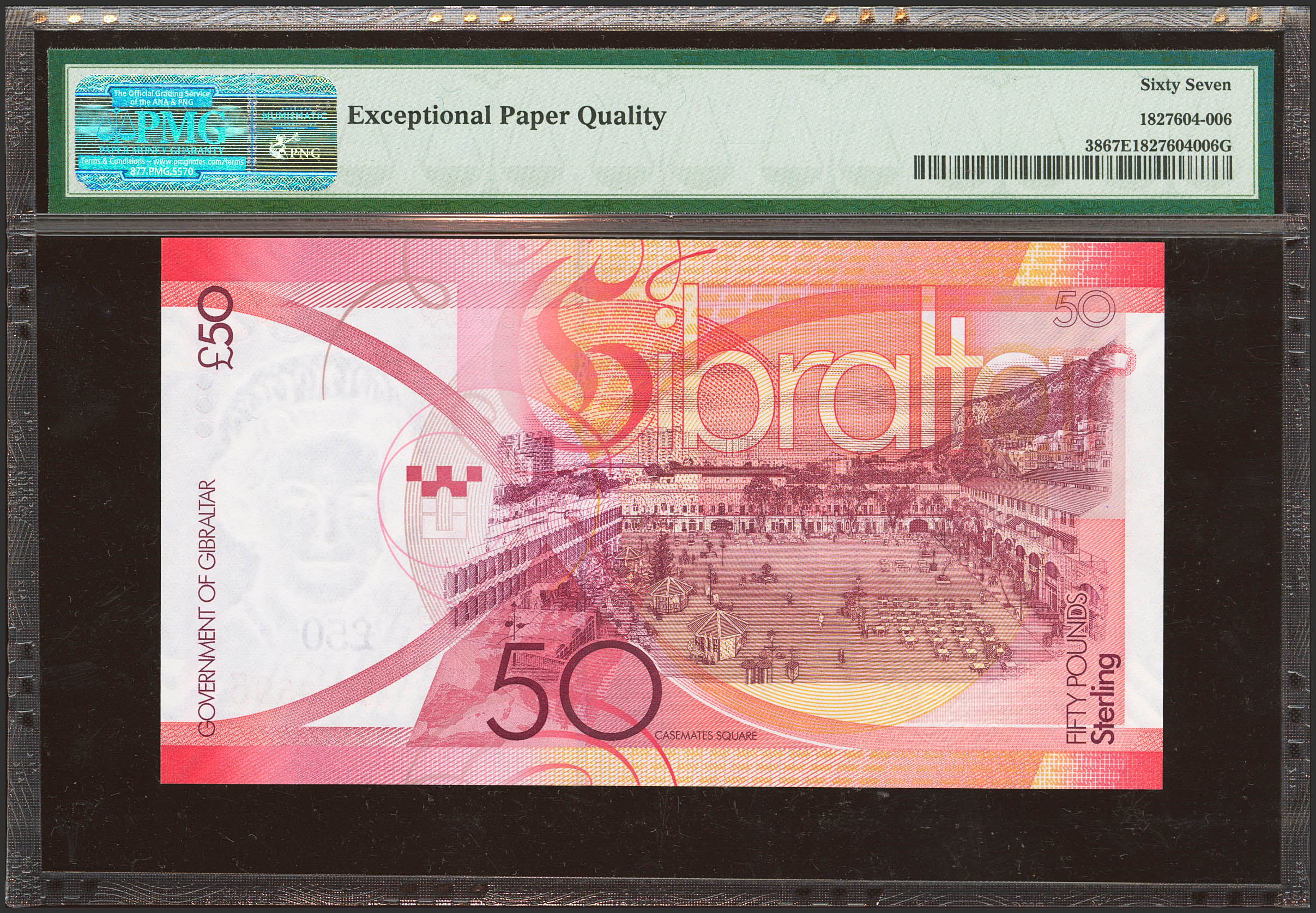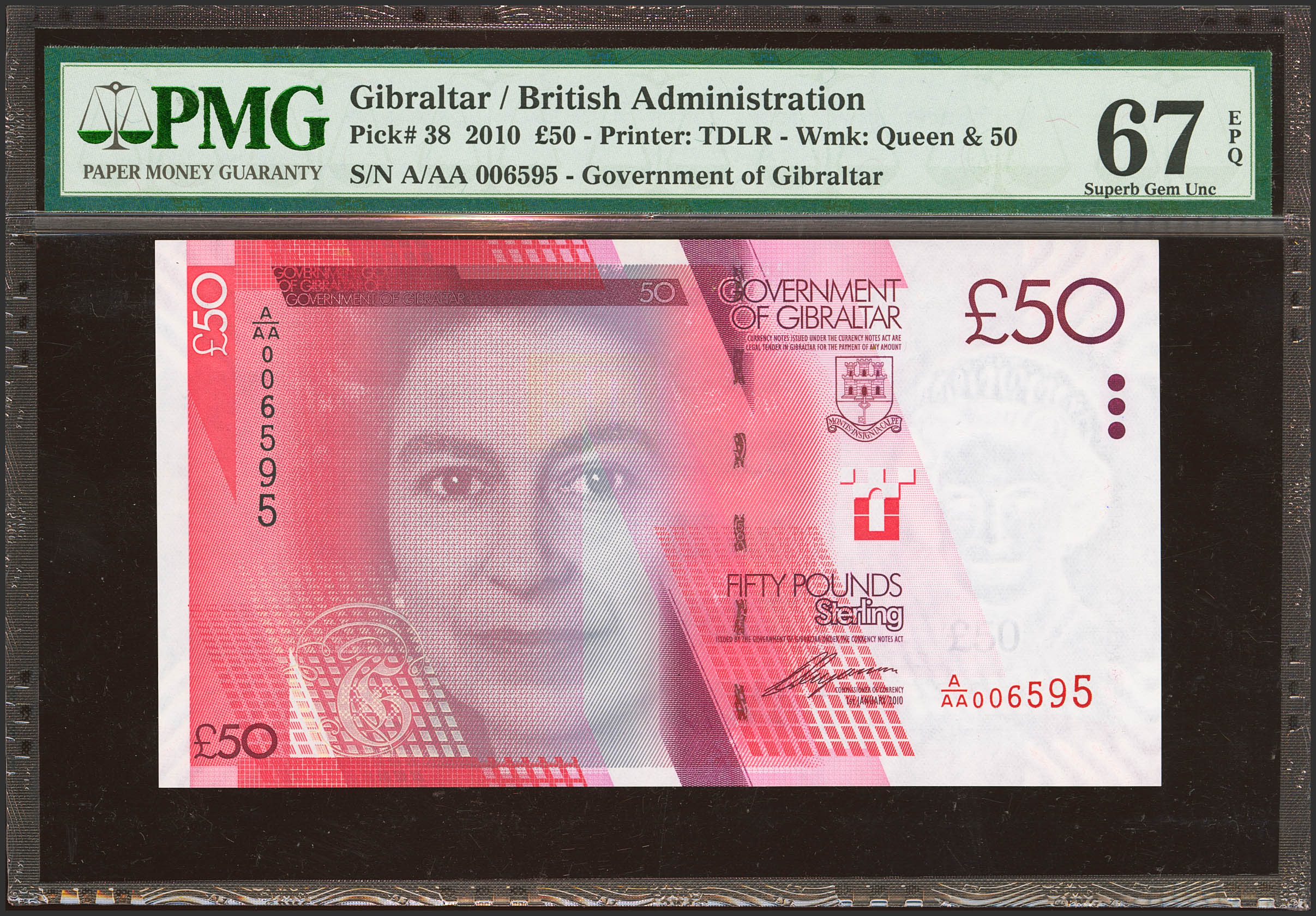 GIBRALTAR. 50 Pounds. 2010. (Pick: 38). PMG67EPQ.
