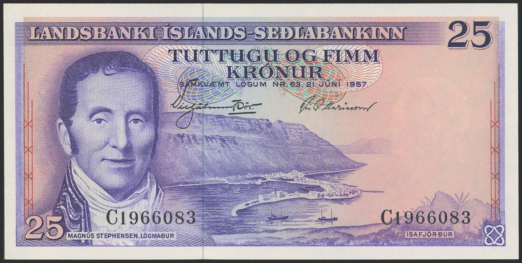 ICELAND. 25 Krónur. 1957. (Pick: 39a). About Uncirculated.