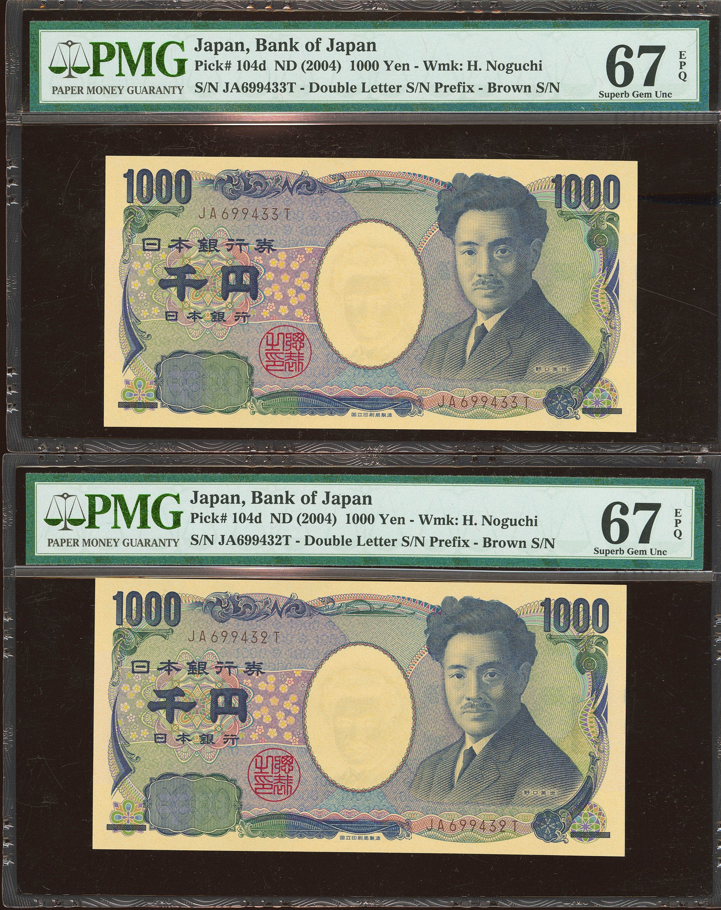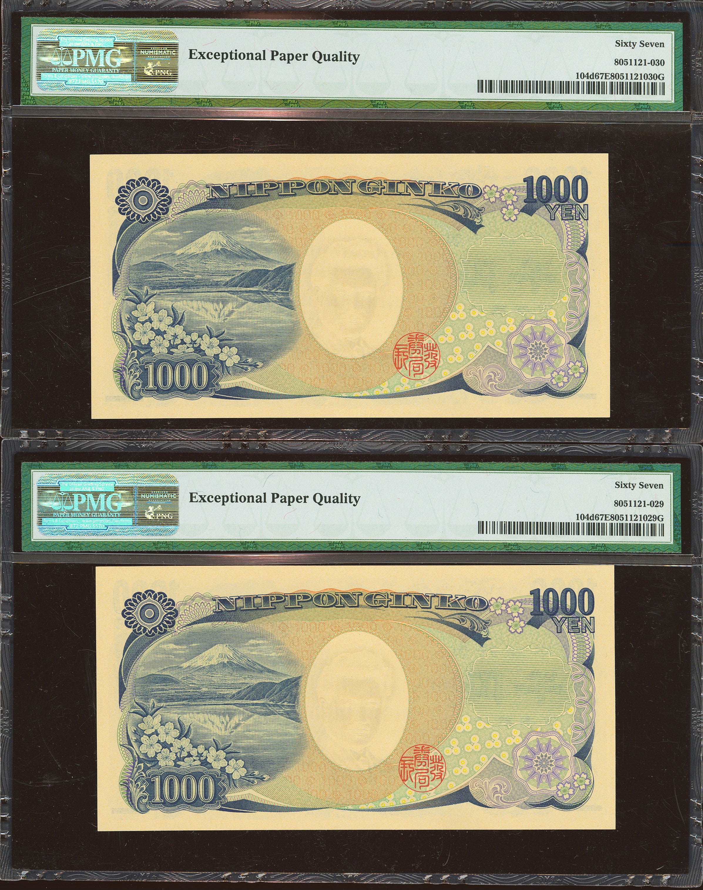 JAPAN. 1000 Yen. Correlative pair. (2004ca). (Pick: 104d). PMG67EPQ, both.
