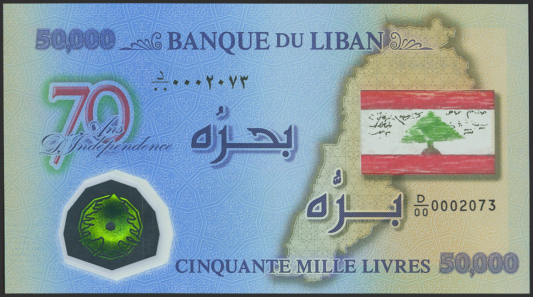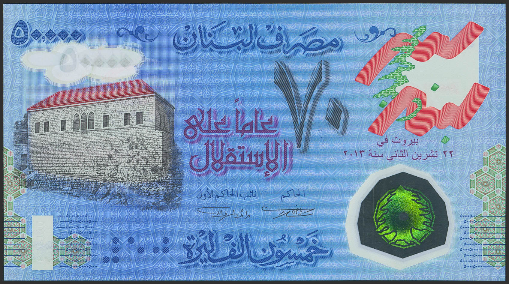 LEBANON. 50,000 Livres. 2013. (Pick: 96). Less than Uncirculated.