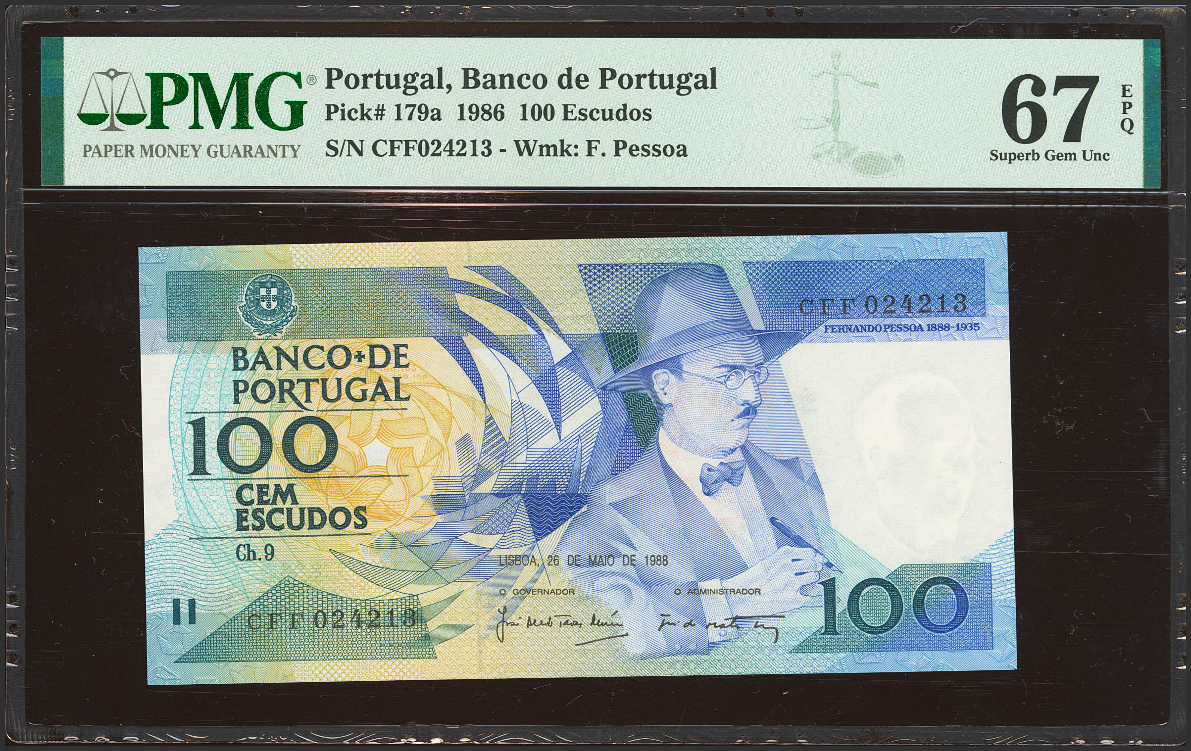 PORTUGAL. 100 Shields. 1986. (Pick: 179a). PMG67EPQ.