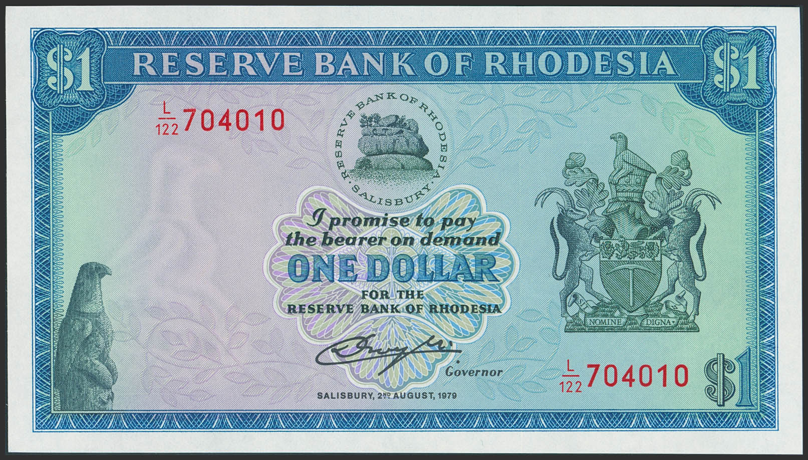 English RHODESIA. 1 Dollar. 1979. (Pick: 38). Uncirculated.