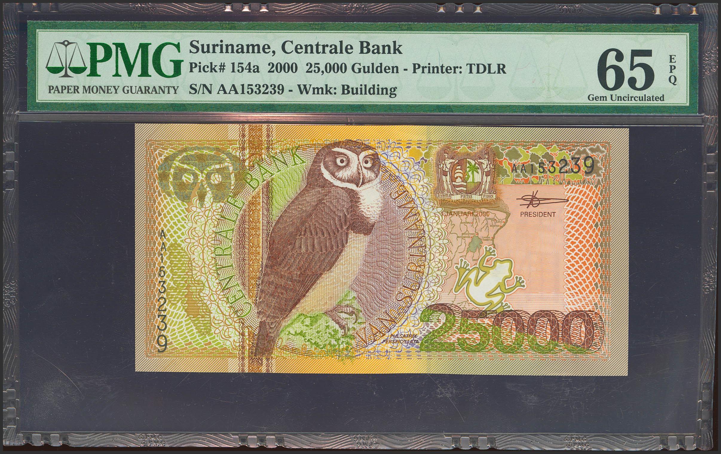 SURINAME. 25000 Gulden. 1 January 2000. (Pick: 154a). PMG65EPQ.