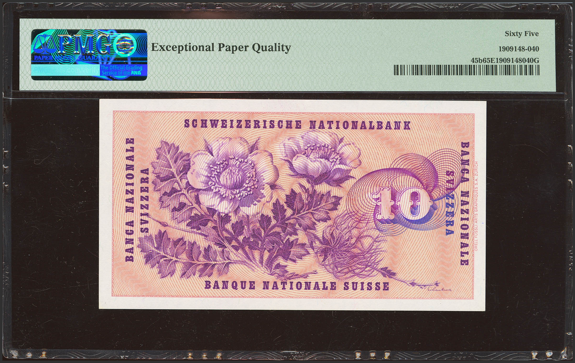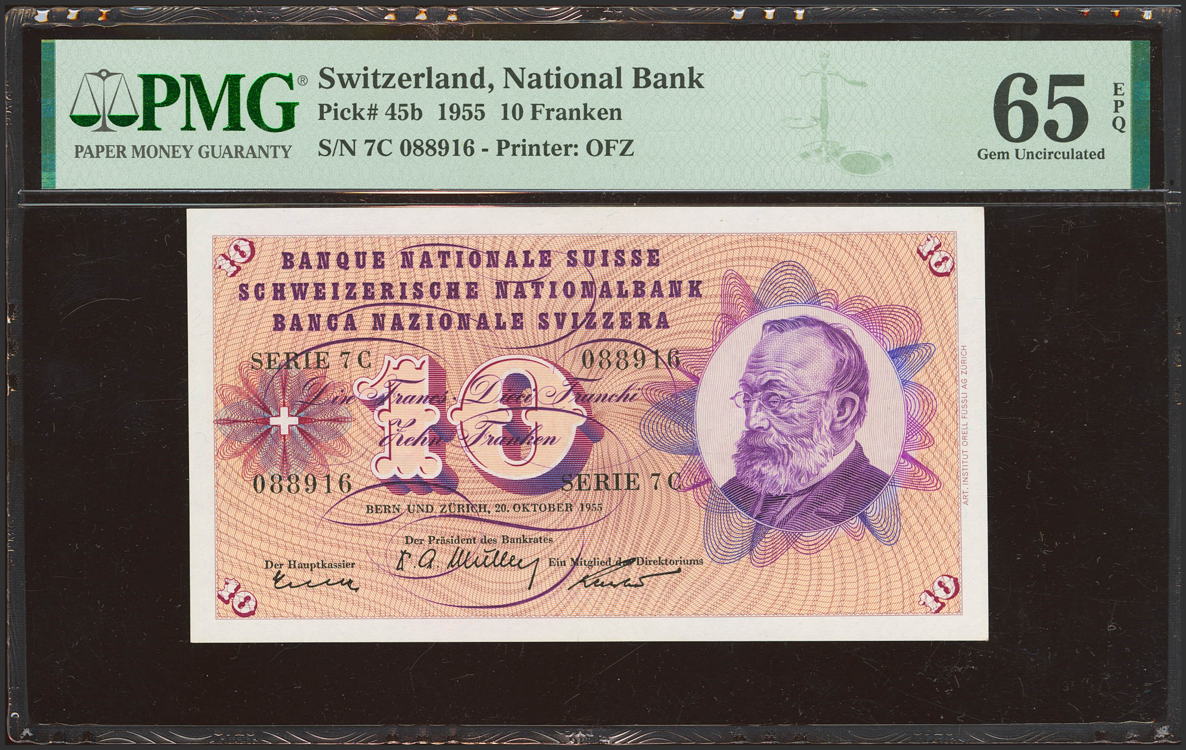 English SWITZERLAND. 10 Franken. 20 October 1955. (Pick: 45b). PMG65EPQ.