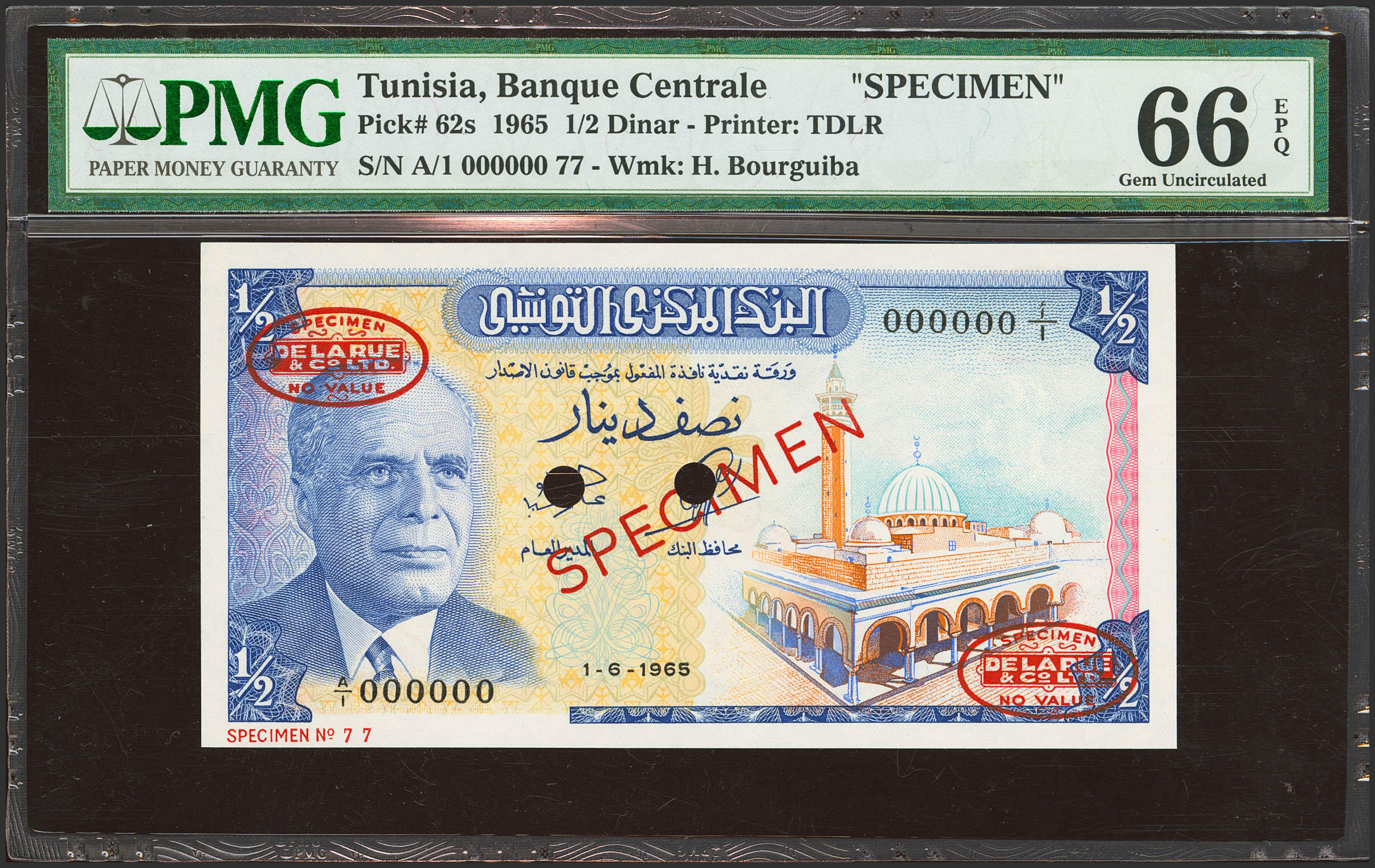 TUNISIA. ½ Dinar. 1965. (Pick: 62s). Rare. PMG66EPQ.