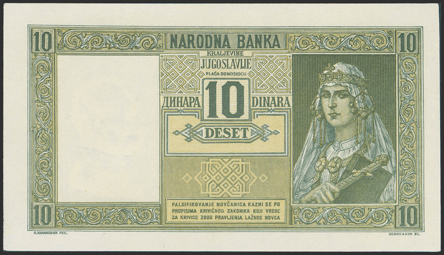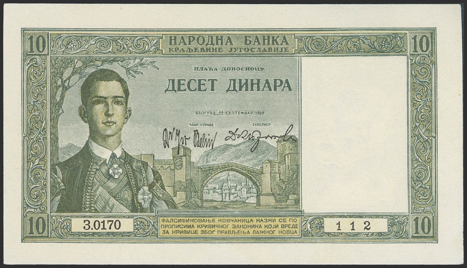 YUGOSLAVIA. 10 Dinara. 1939. (Pick: 35). Less than Uncirculated.