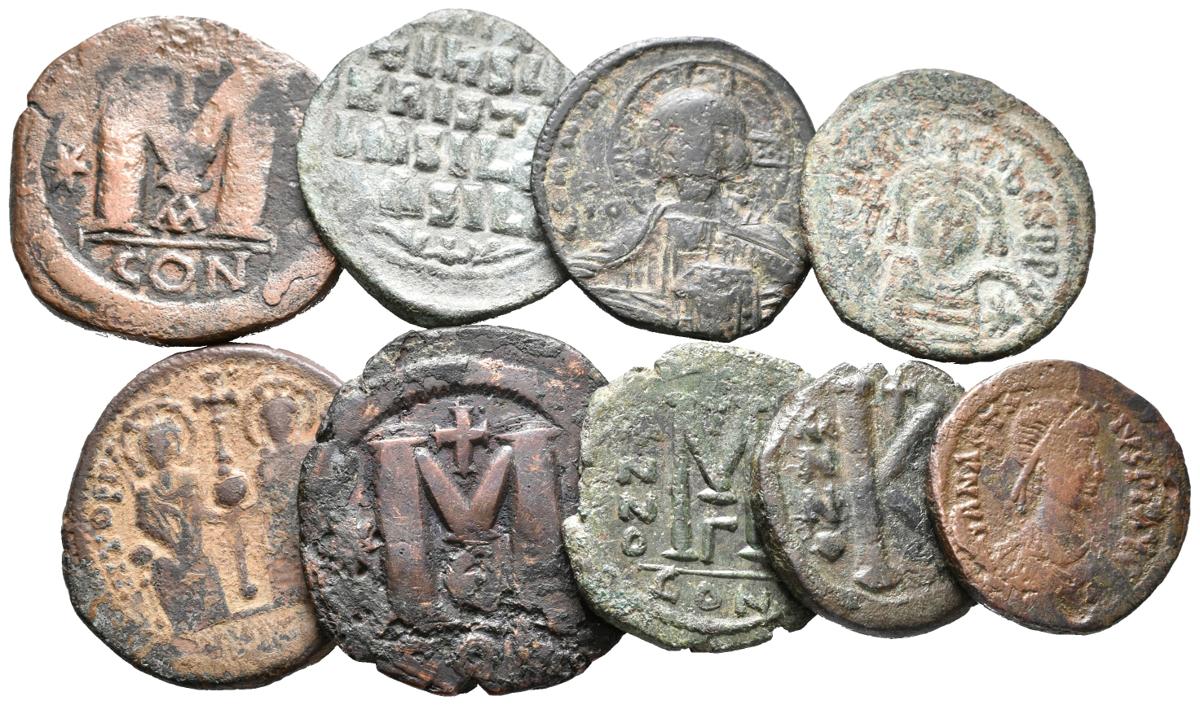 IMPERIO BIZANTINO. Lote compuesto por 9 follis de diferentes emperadores, todos diferentes. Ae. A EXAMINAR.