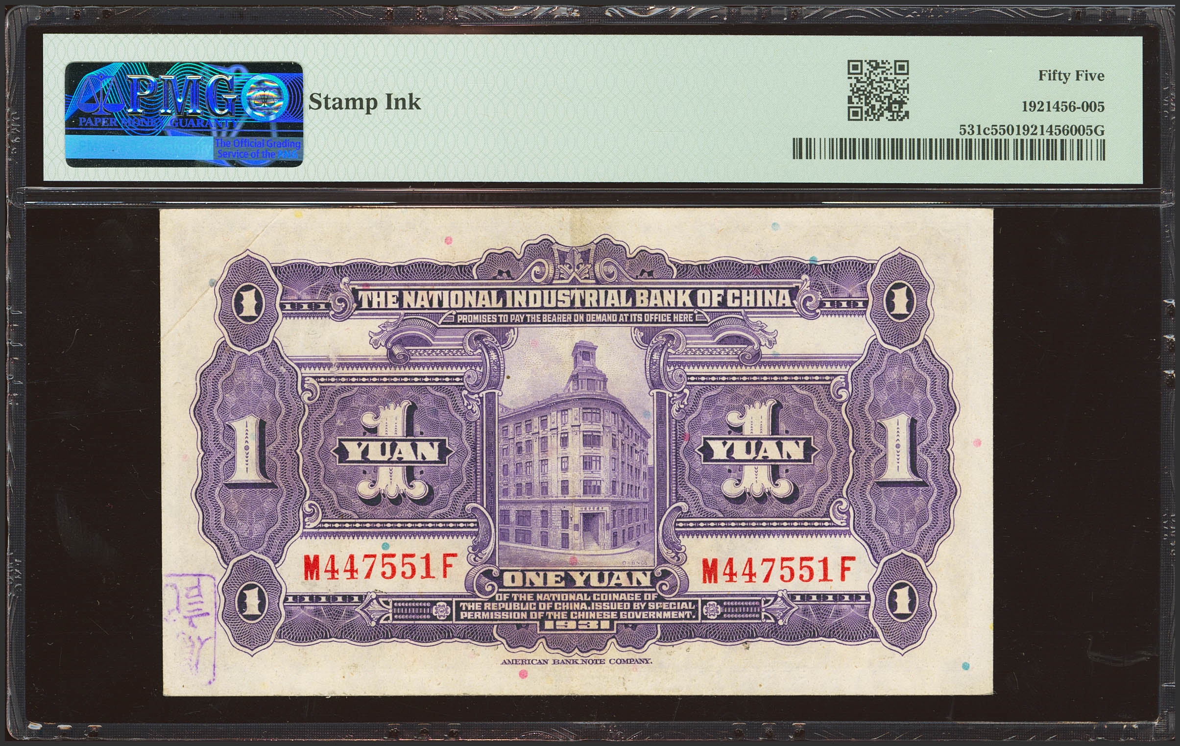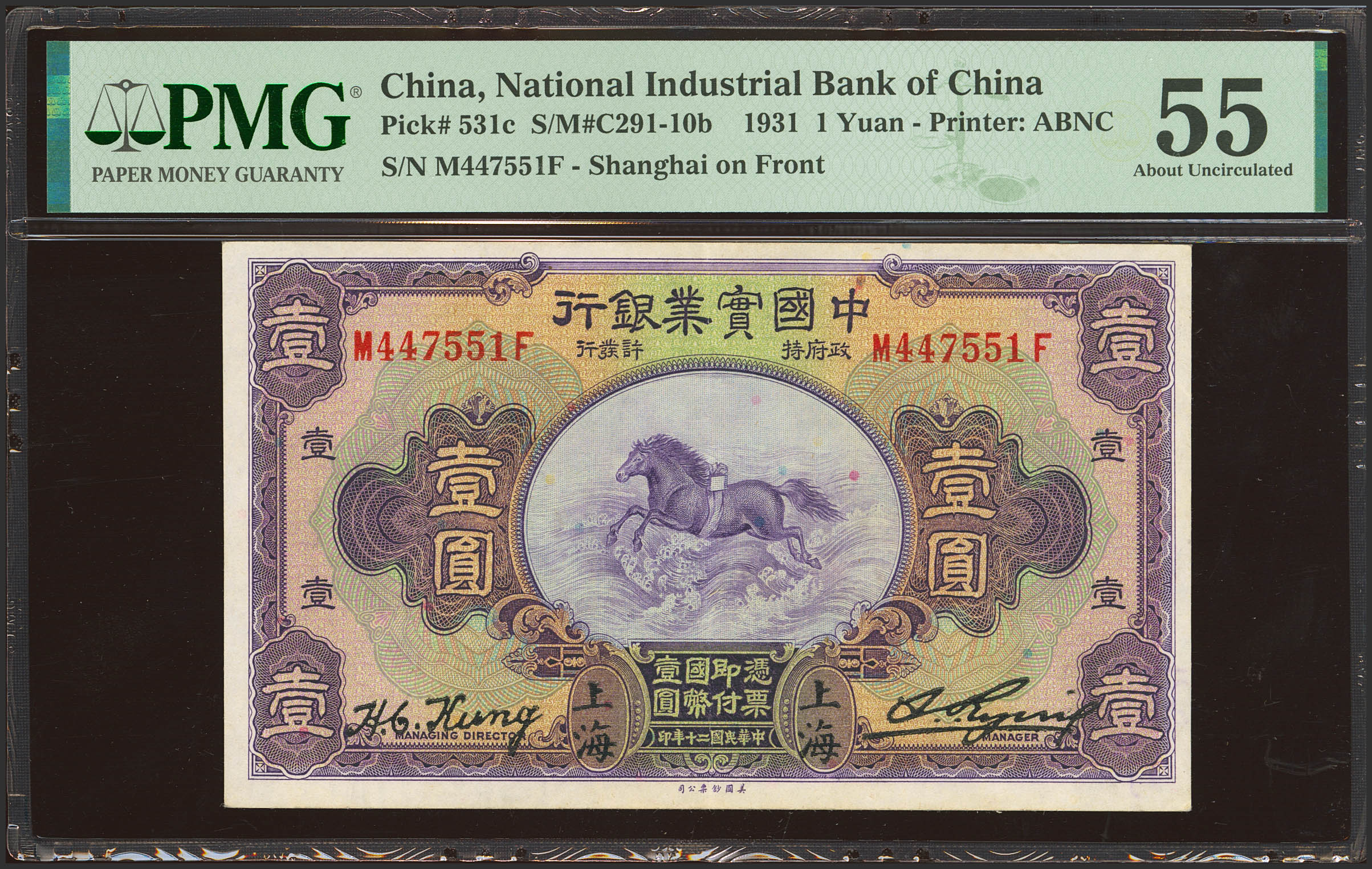 CHINA. 1 Yuan. 1931. National Industrial Bank of China. Shanghai on front. (Pick: 531c, SM: C291-10b). PMG55 (stamp ink).