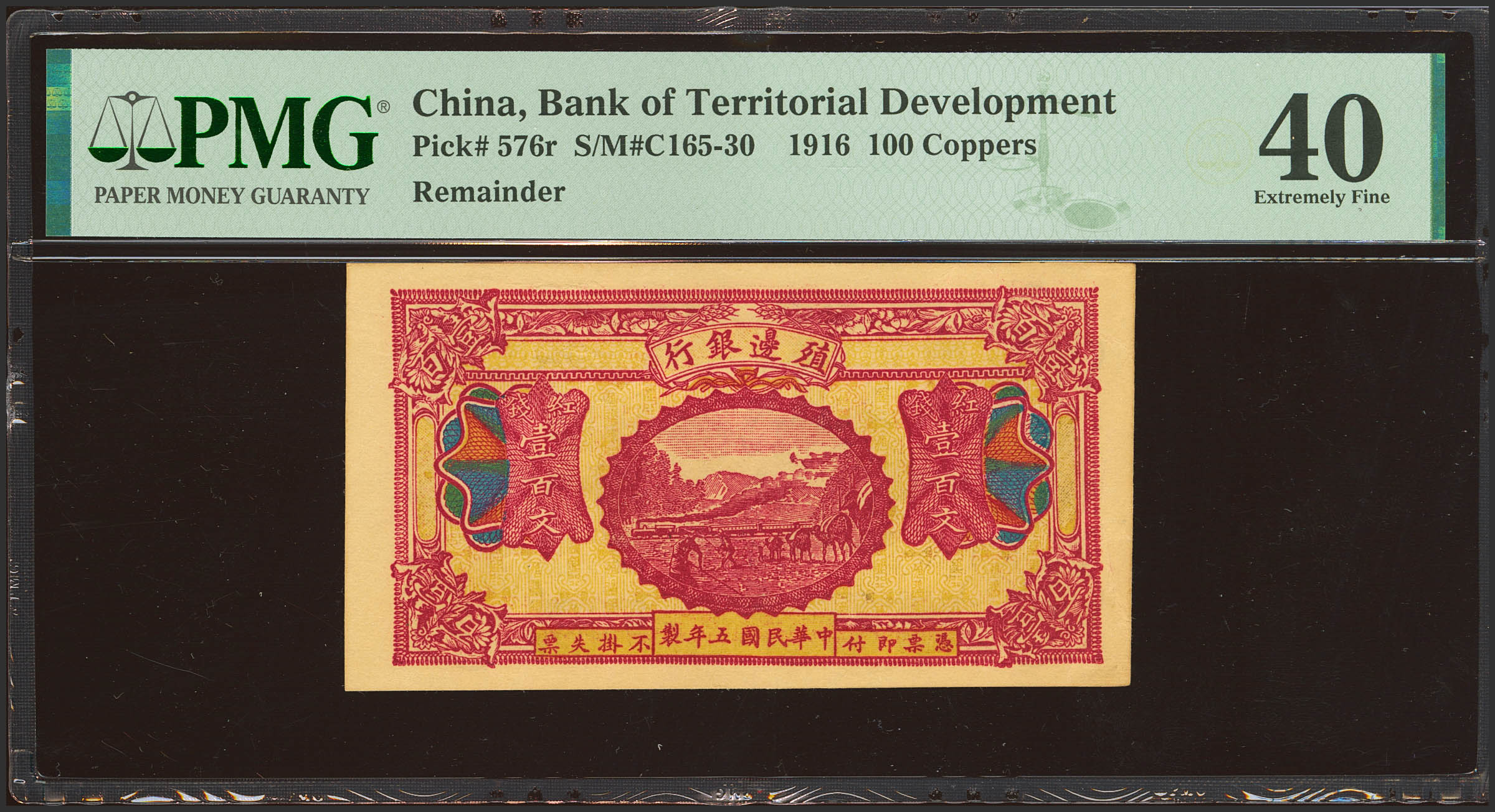 CHINA. 100 Coppers. 1916. Bank of Territorial Development. (Pick: 576r. SM: C165-30). PMG40.