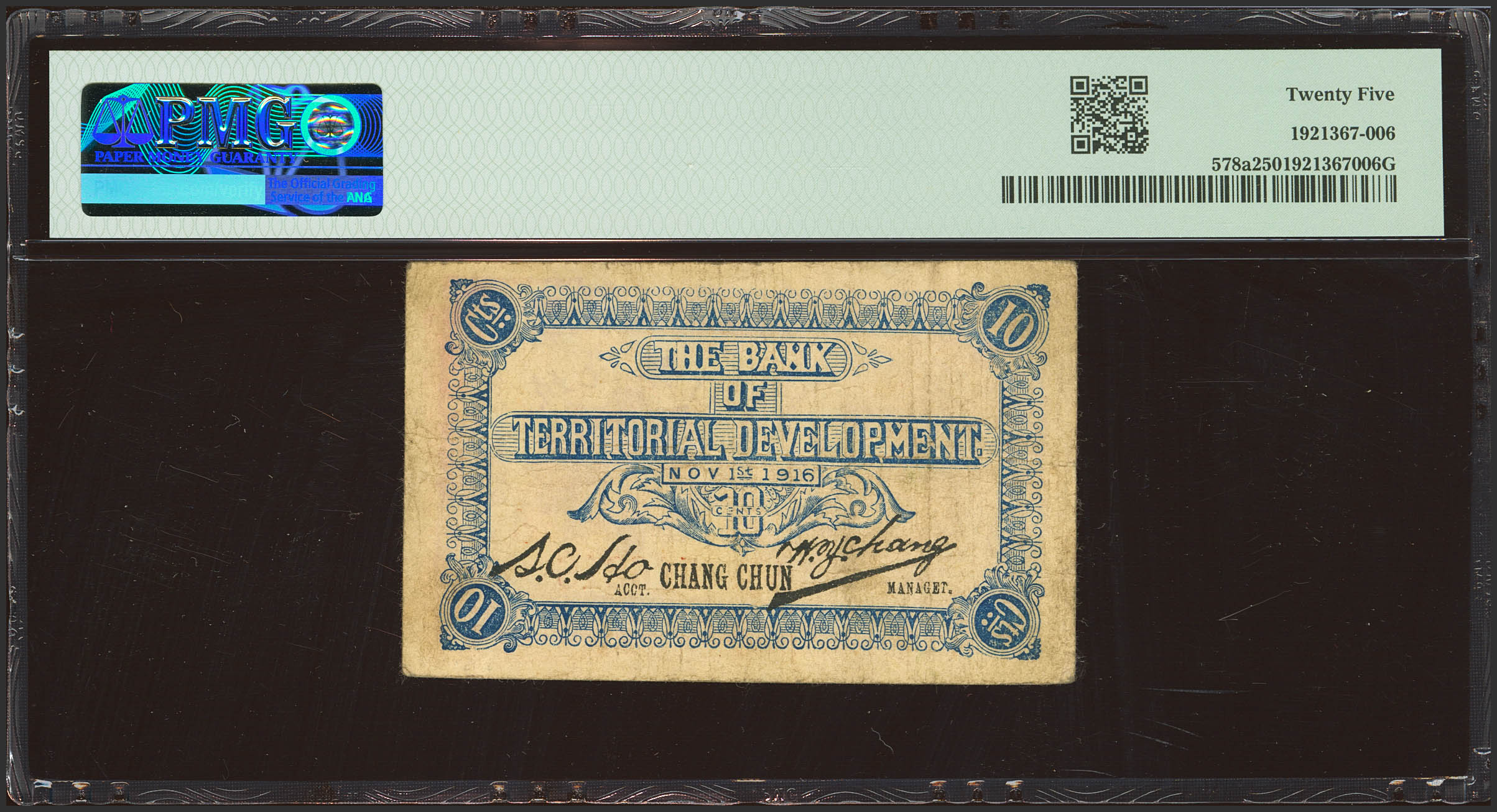 CHINA. 10 Cents. 1 November 1916. Bank of Territorial Development. Chang Chun. (Pick: 578a, SM: C165-40b). PMG25.
