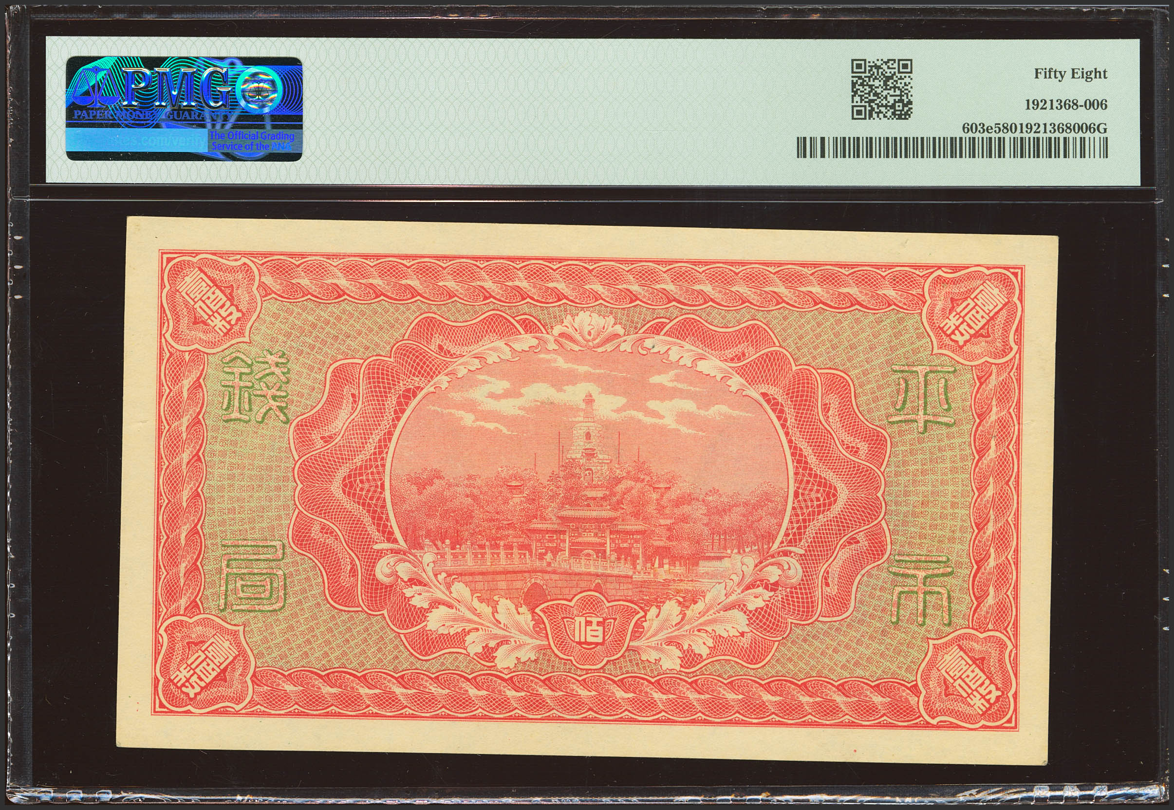 English CHINA. 100 Coppers. 1915. Market Stabilization Currency Bureau. Honan. (Pick: 603e, SM: T183-5e). PMG58.