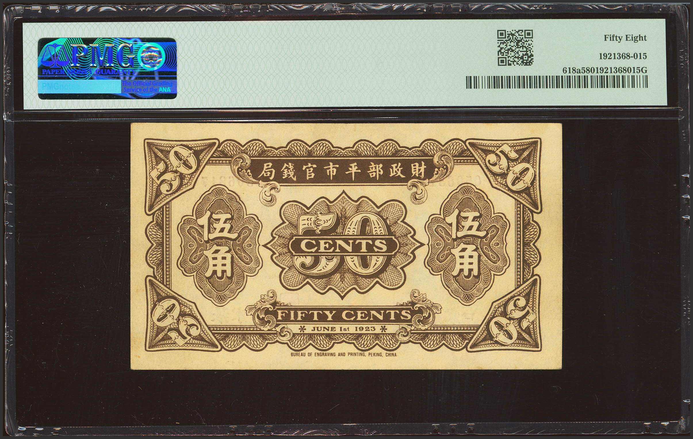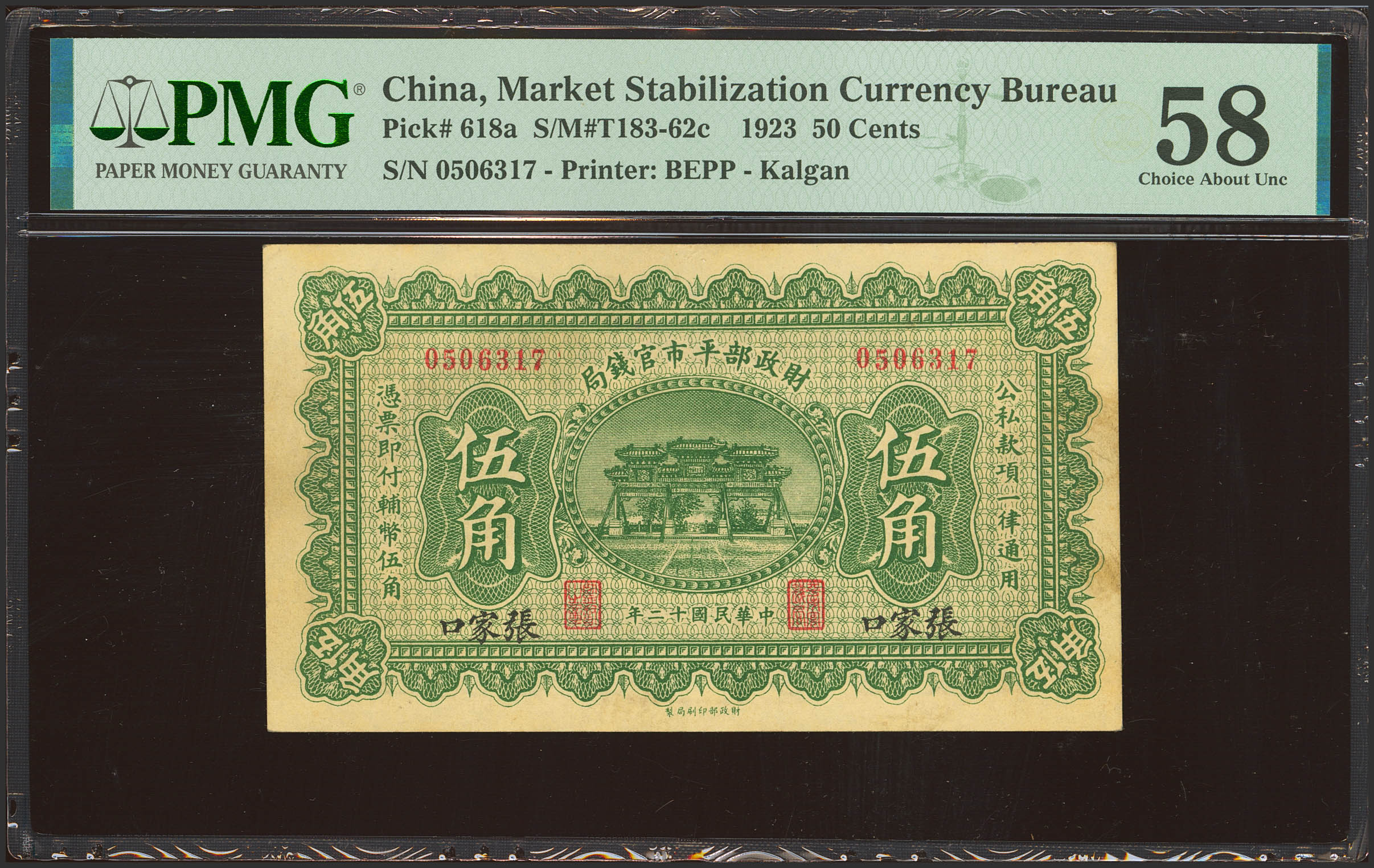 CHINA. 50 Cents. 1 June 1923. Market Stabilization Currency Bureau. Kalgan. (Pick: 618a, SM: T183-62c). PMG58.