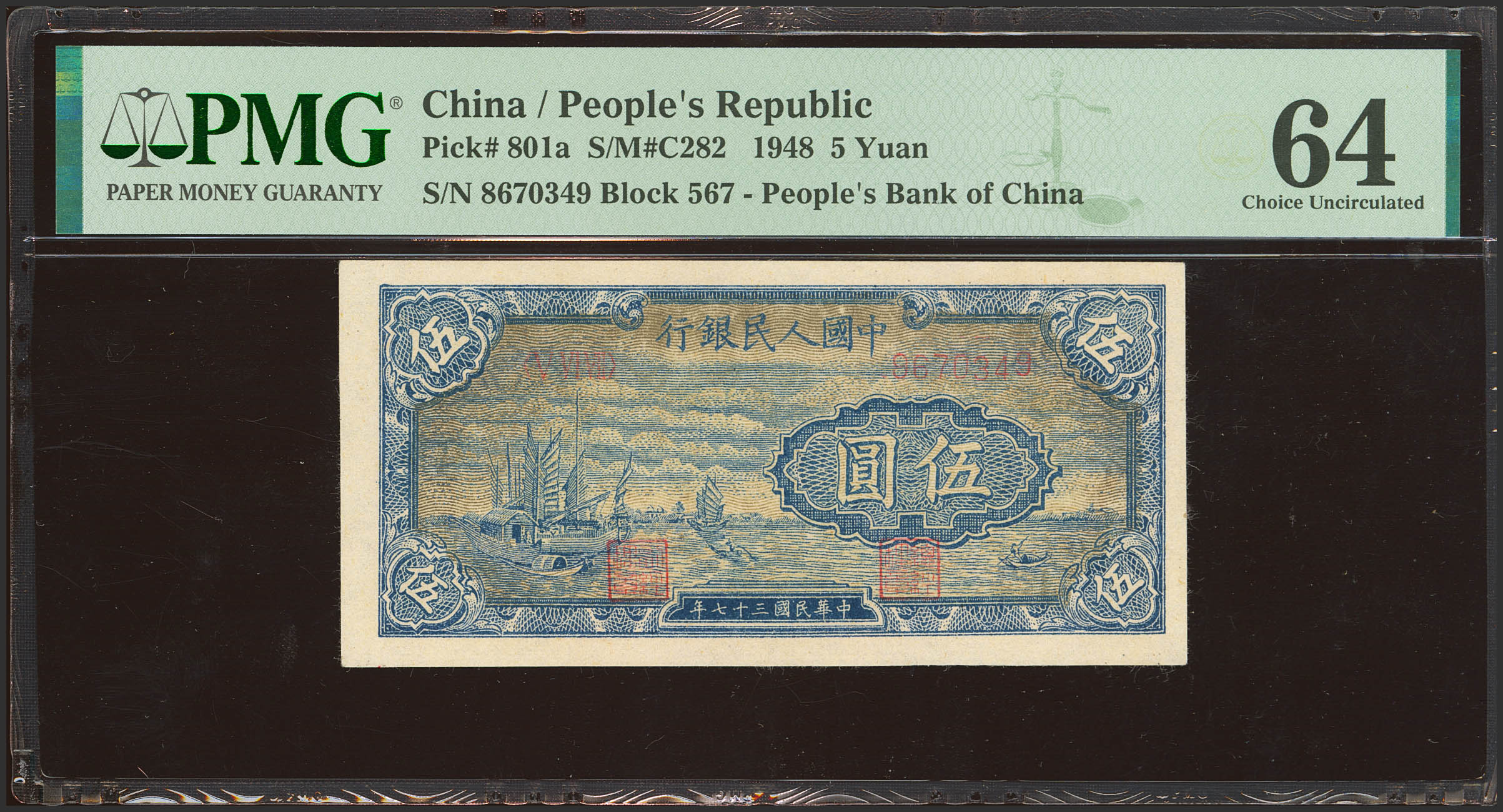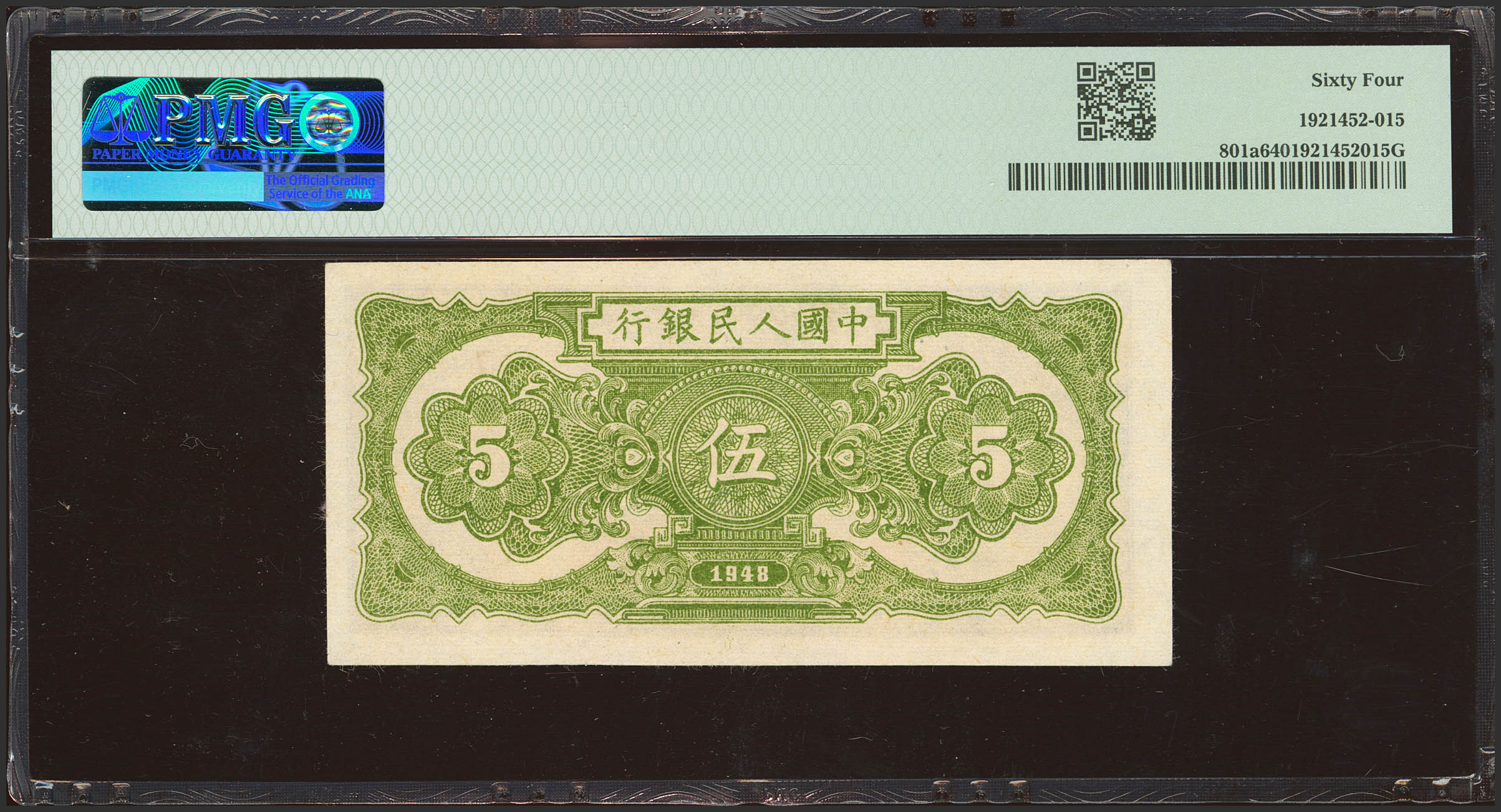 CHINA. 5 Yuan. 1948. Peoples Bank. (Pick: 801, SM: C282). PMG64.