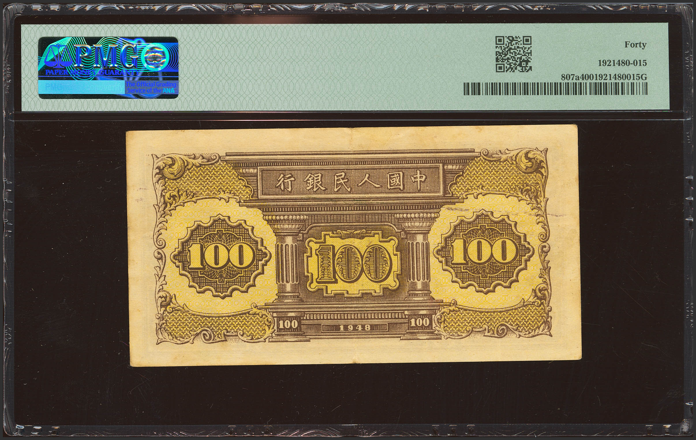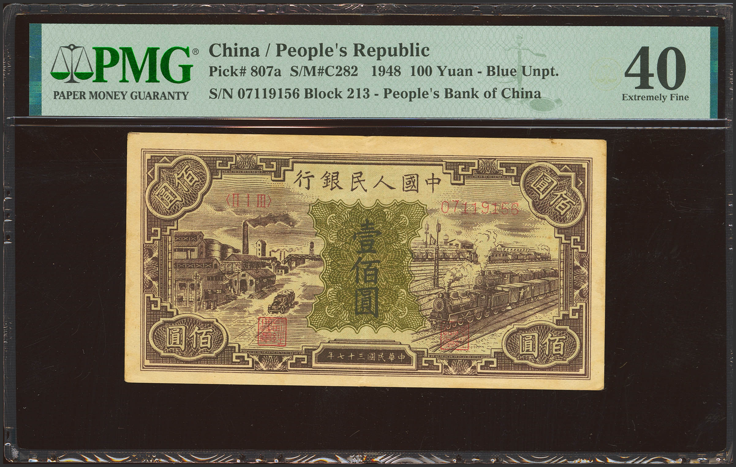 CHINA. 100 Yuan. 1948. Peoples Bank. (Pick: 807a, SM: C282). PMG40.